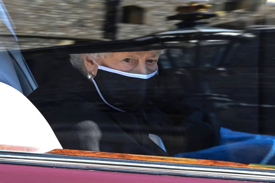 Η βασίλισσα Ελισάβετ έφθασε στην εκκλησία με την Bentley της. Η μονάρχης, η οποία υπήρξε παντρεμένη επί 73 χρόνια με τον πρίγκιπα Φίλιππο δεν μπόρεσε να κρύψει την συγκίνησή της, σκουπίζοντας τα δάκρυά της μέσα στο αυτοκίνητο που την οδηγούσε στο παρεκκλήσι του Αγίου Γεωργίου. Φτάνοντας μπροστά στην εκκλησία, στάθηκε προς στιγμή δίπλα στο φέρετρο του συζύγου της την ώρα που ήχησαν κανονιοβολισμοί σε ανάμνηση του δούκα.