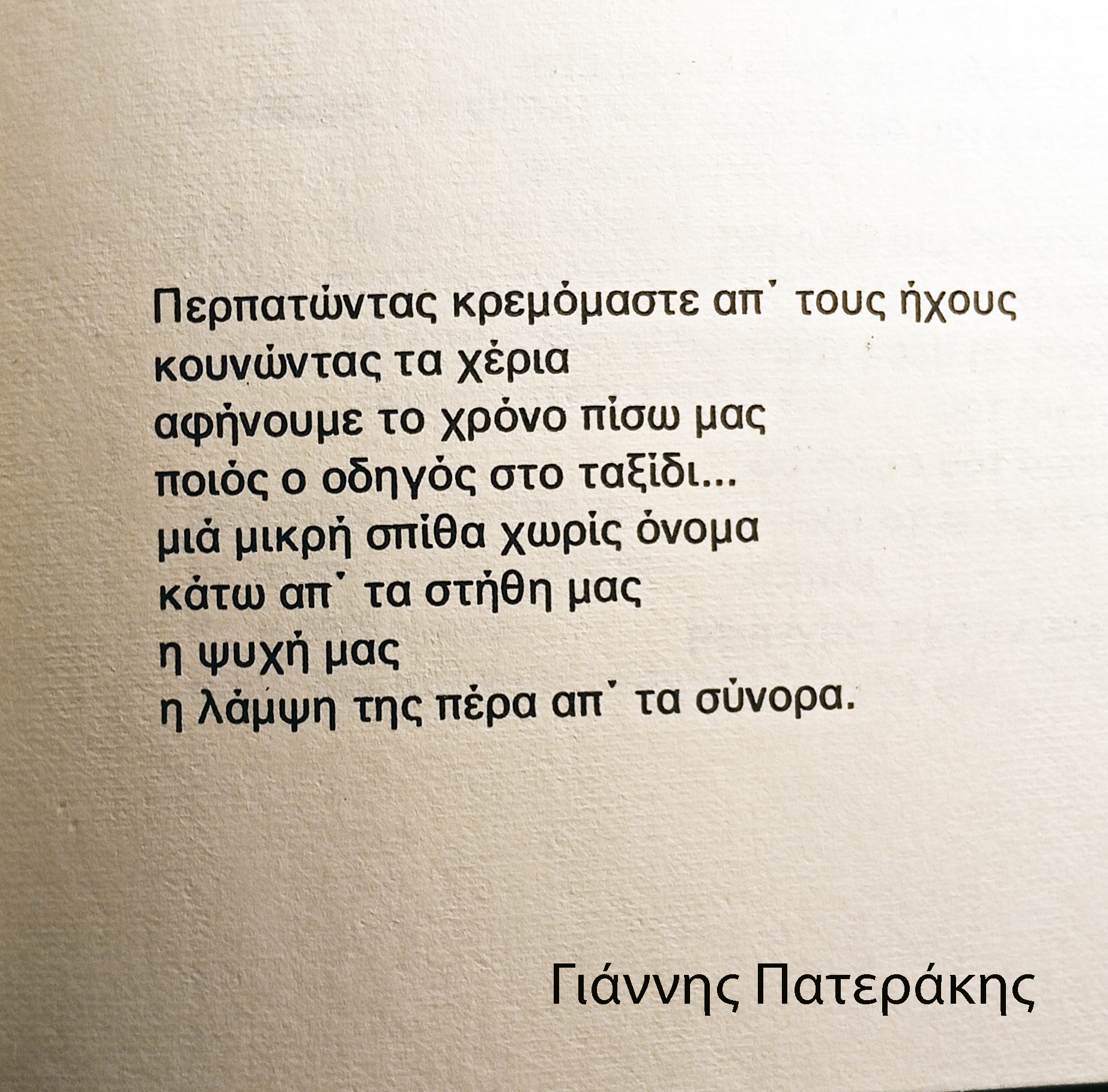 Στη Λήμνο την δεκαετία του 80 κάποιοι αναζητητές του πνεύματος δημιούργησαν μια μικρή ομάδα με κοινές ανησυχίες, υπαρξιακές , φιλοσοφικές , μεταφυσικές και λογοτεχνικές. Ο Γιάννης Πατεράκης, ο Γιώργος Τριανταφύλλου , ο Βαγγέλης Μωράκης , ο Στράτος Σαμακλής , ο Γιάννης Ψάρρας και ο Θέμης Βασιλειάδης. Οι συγκεντρώσεις τους με τις ατέρμονες πνευματικές συζητήσεις σε σπίτια και γνωστά στέκια της εποχής, συμπληρώνονταν από τις ανεπανάληπτες ποιητικές βραδιές, θυμίζοντας σκηνικά βγαλμένα από άλλες εποχές.