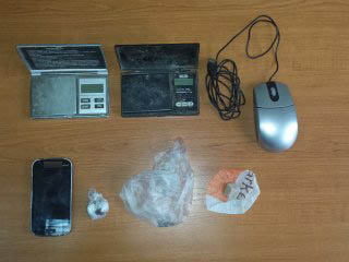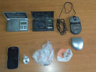 (23) ναρκωτικά δισκία, (5) ηλεκτρονικές ζυγαριές ακριβείας και σύνεργα για τον διαχωρισμό και συσκευασία των ναρκωτικών ουσιών (ζελατίνες, χαρτάκια, κόφτης, κ.ά.),