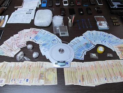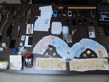 Κατασχέθηκαν στο πλαίσιο των ερευνών, μεταξύ άλλων, ποσότητες ηρωίνης και κάνναβης, ναρκωτικά χάπια, σύνεργα διαχωρισμού και συσκευασίας ναρκωτικών, ζυγαριές ακριβείας, μαχαίρια και (10.000) ευρώ σε μετρητά.