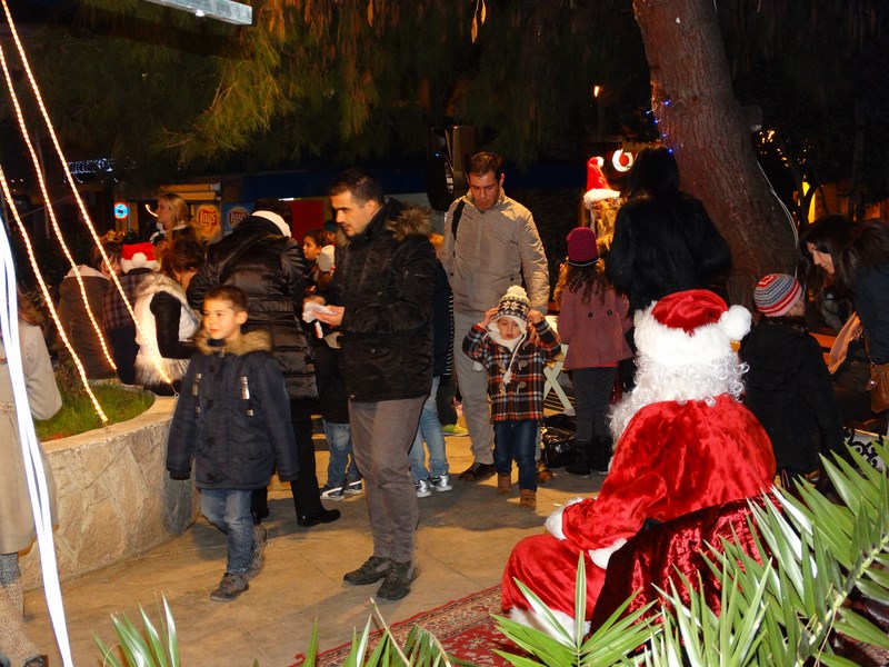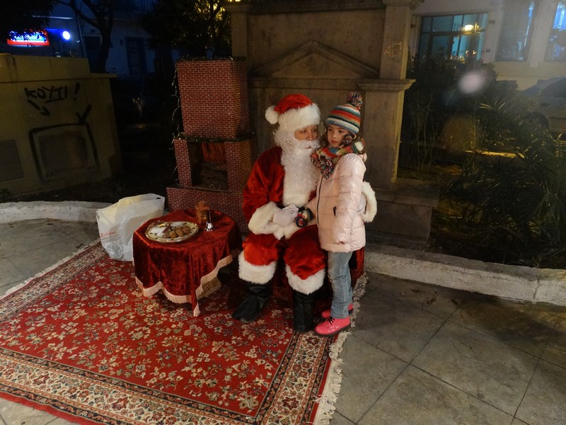 Ο Άγιος εμφανίστηκε με την εντυπωσιακή φορεσιά του, κάθισε στο θρόνο του και φωτογραφήθηκε με τους μικρούς θαυμαστές του.