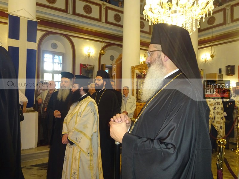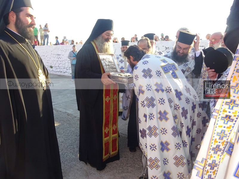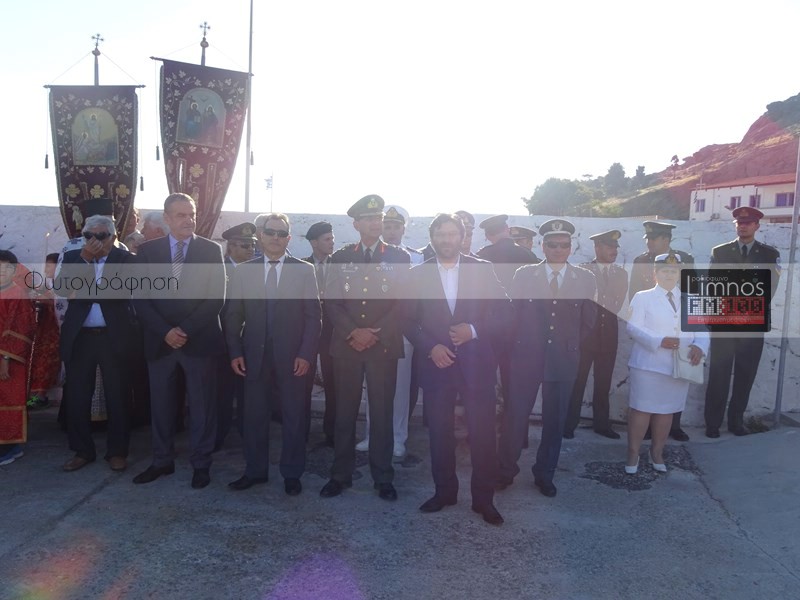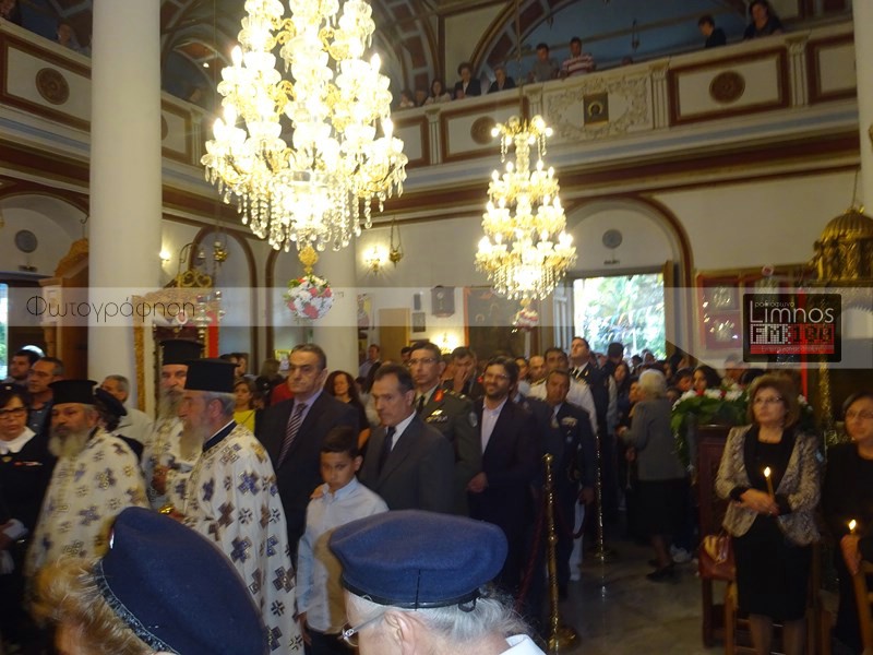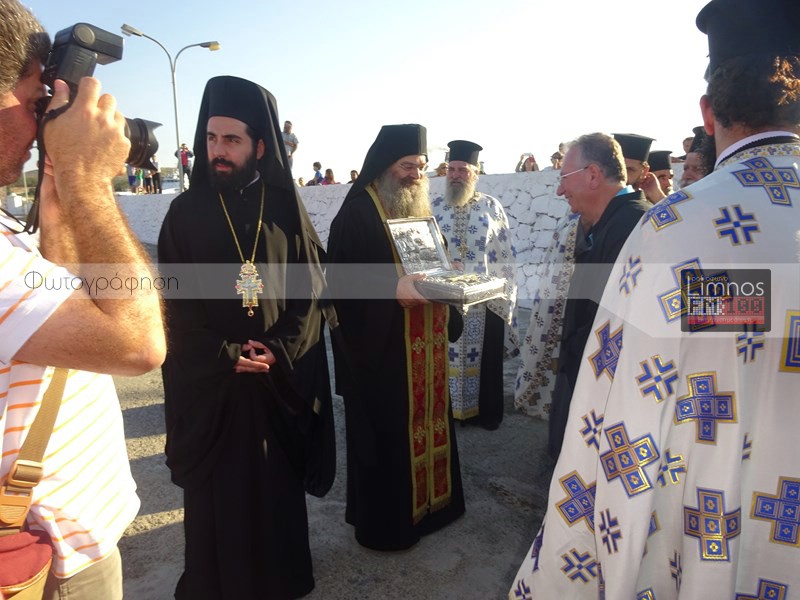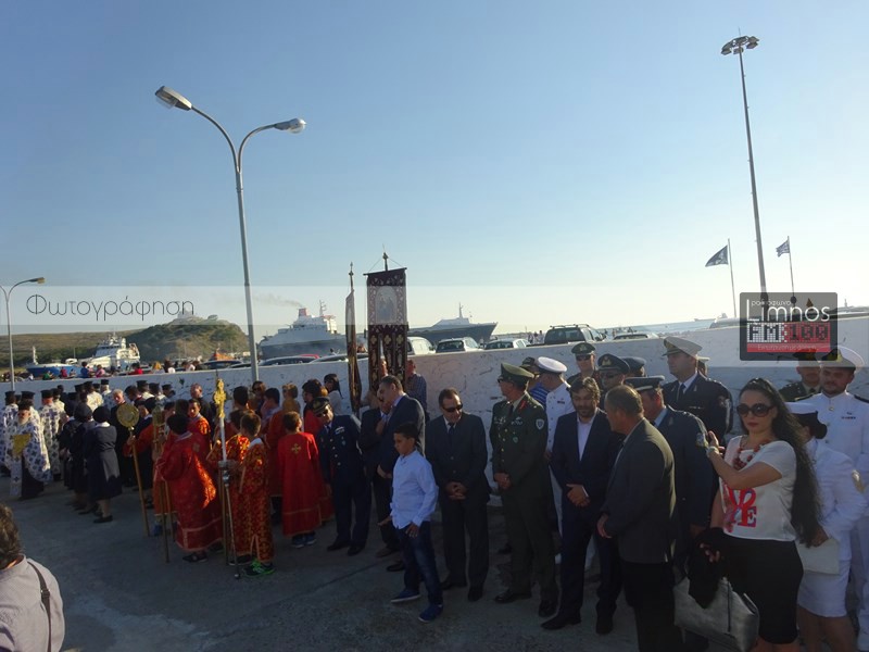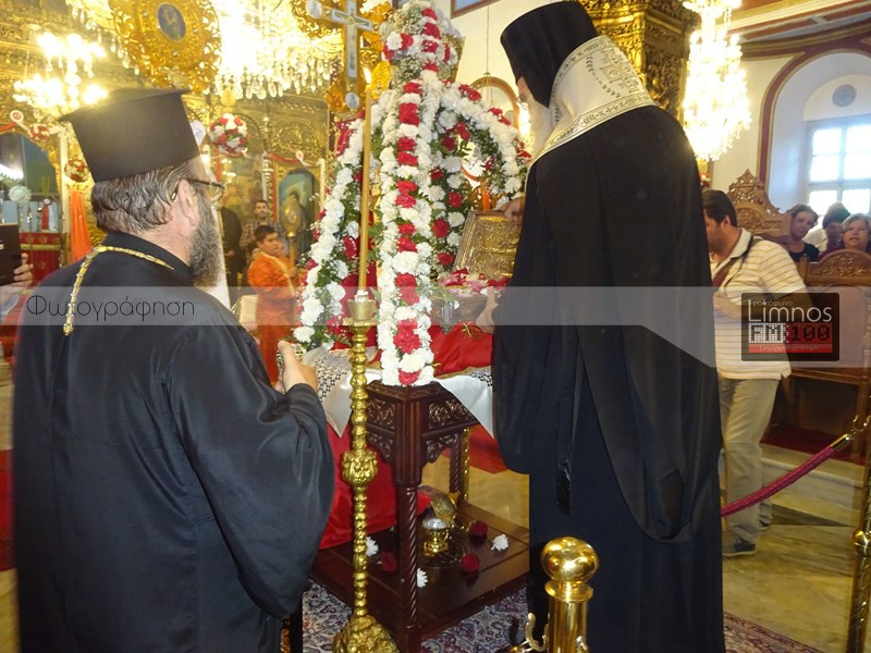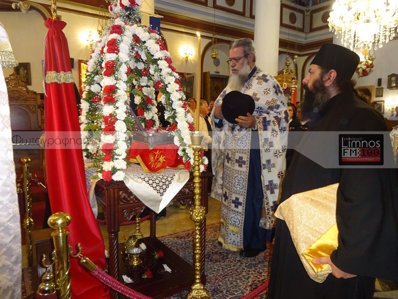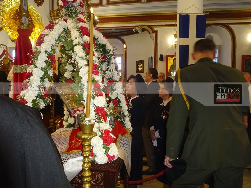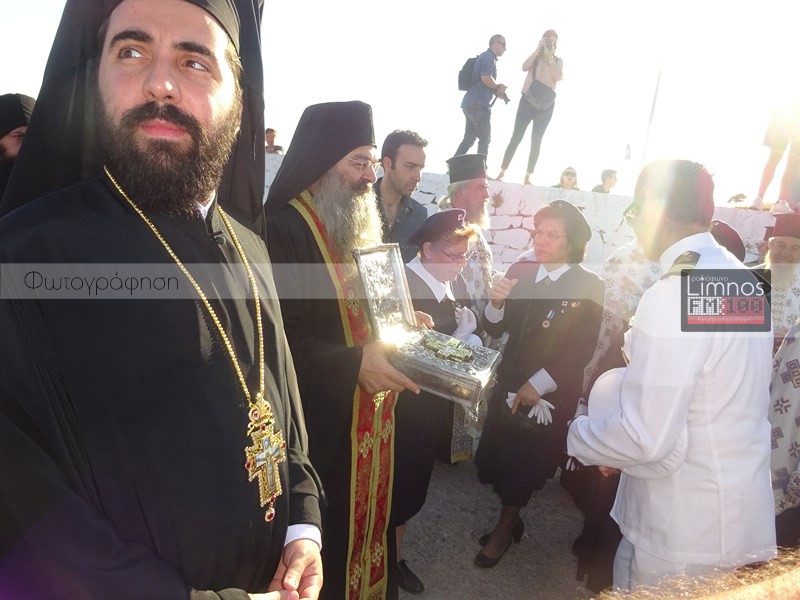 Το παρών στις εκδηλώσεις έδωσε η πολιτική και στρατιωτική ηγεσία του τόπου και των Ενόπλων Δυνάμεων, ο βουλευτής Νομού Λέσβου Χαράλαμπος Αθανασίου, ο Μητροπολίτης Λήμνου και Αγίου Ευστρατίου κ.κ Ιερόθεος, πλήθος ιερέων, καθώς και εκπρόσωποι του Ερυθρού Σταυρού και του Λυκείου Ελληνίδων Λήμνου. Μετά την άφιξη στον Ιερό Ναό Αγίας Τριάδας Μύρινας, οι άρχοντες του νησιού προσκύνησαν το ιερό τεμάχιο, ενώ ο Δήμαρχος Λήμνου απέφυγε να προσκυνήσει.