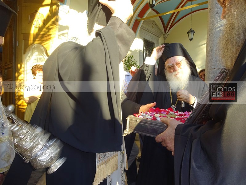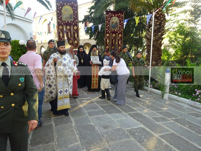 Αμέσως μετά την άφιξη του Τιμίου Ξύλου πραγματοποιήθηκε Λιτάνευση από το Λιμάνι της Μύρινας προς τον Ι.Ν. Αγίας Τριάδας, με τη συμμετοχή αξιωματικών και στρατιωτικών τμημάτων, τη Φιλαρμονική του Στρατού και του Δήμου Λήμνου και πλήθος πιστών.