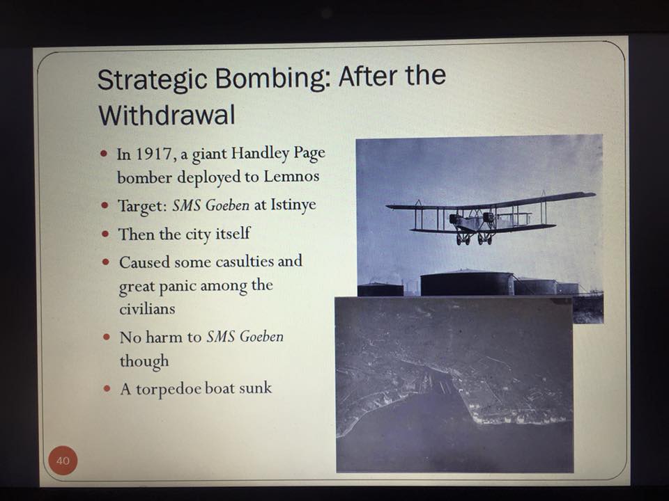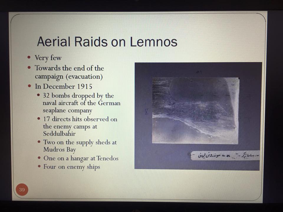 Τα πρακτικά αυτού του Αγγλόφωνου Συνεδρίου, θα μπορέσουν να χρησιμοποιηθούν σαν μια πρώτη βάση για να δημιουργηθεί ένα ρεύμα σημαντικών αποφάσεων για την πραγματοποίηση μελετών και την εξαγωγή σύγχρονων συμπερασμάτων για τον Α παγκόσμιο Πόλεμο στην Ελλάδα και θα διαφωτίσει ακόμα περισσότερο τη θέση της Λήμνου και της Ελλάδας γενικότερα , και τις σχέσεις με τις χώρες που την εποχή εκείνη 1914-1918, συμμετείχαν σ αυτόν τον άγριο και «άγνωστο Πόλεμο» για πολλούς σύγχρονους».