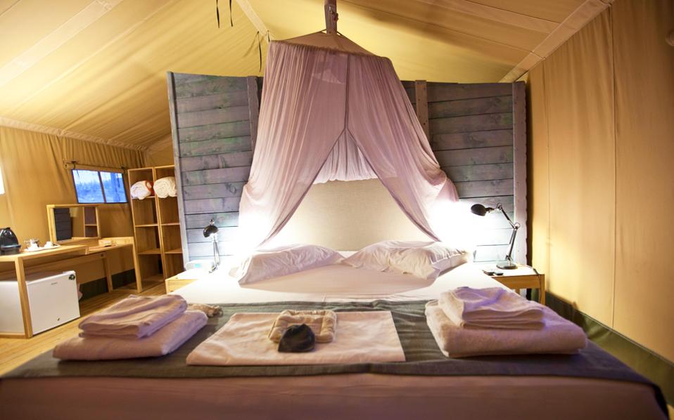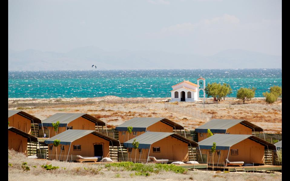 Τη σκυτάλη στη διάδοση των εναλλακτικών διακοπών με όρους άνεσης και πολυτέλειας πήρε το 2012 το Surf Camp Keros, ο κλασικός προορισμός για surfers στα ανατολικά παράλια της Λήμνου. Με στόχο να καλυφθούν οι ανάγκες της σχολής που άνοιξε λίγα χρόνια πριν στην παραλία, δημιουργήθηκε το πρώτο glamping resort που προσφέρει υπηρεσίες ναυταθλητισμού. «Θέλαμε κάτι πρωτότυπο και οικολογικό που να ταιριάζει στον χαρακτήρα της περιοχής, η οποία είναι προστατευόμενη από το Ευρωπαϊκό Οικολογικό Δίκτυο Natura 2000, ένα δίκτυο ζωνών προστασίας της φύσης» αναφέρει στην «Κ» ο συνιδιοκτήτης του συγκροτήματος Rick Krystallis. «Πέρα από τις σαφάρι σκηνές που έχουν διαμορφωθεί στο εσωτερικό τους σαν σουίτα πεντάστερου ξενοδοχείου, έχουμε φτιάξει και τρίγωνες ινδιάνικες σκηνές (mini safari tents) ως οικονομικότερη επιλογή». Το καλοκαίρι «γεμίζουν» περισσότερο με επισκέπτες του εξωτερικού, πολλοί από τα Βαλκάνια» αναφέρει στην «Κ» ο κ. Krystallis, αποδίδοντας τη δημοφιλία του glamping τόσο στους λιγότερο «δραστήριους» Ελληνες που αντιπροσωπεύουν μόνο το 5% των επισκεπτών του εναλλακτικού resort, όσο και στην προτίμηση των Γερμανών, Αγγλων και Γάλλων σε τέτοιου είδους θαλάσσια σπορ. «Ελάχιστοι είναι εκείνοι που έρχονται -αν και θα μπορούσαν- μόνο για τις υπηρεσίες του glamping, σίγουρα όμως ο συνδυασμός τους προτρέπει να μας επιλέξουν».