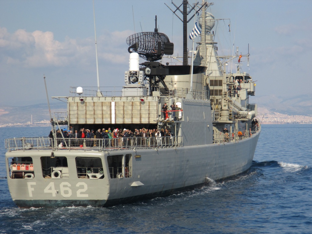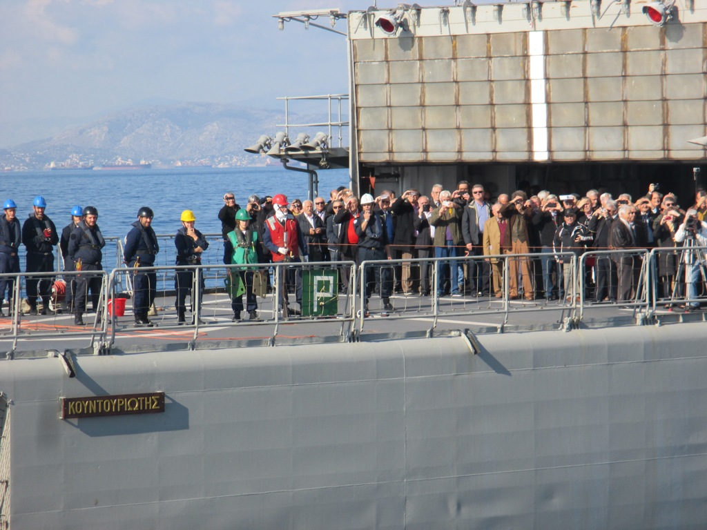 Η φρεγάτα «ΚΟΥΝΤΟΥΡΙΩΤΗΣ» συνοδευόμενη από τη νέα πυραυλάκατο «ΡΟΥΣΣΕΝ», ανοίχτηκαν στον Σαρωνικό κόλπο και εκτέλεσαν μερικά ναυτικά – τεχνικά – γυμνάσια, προτού καταπλεύσουν το μεσημέρι στο λιμάνι του Πειραιά, όπου αποβίβασαν τον κόσμο και προετοιμάστηκαν προκειμένου να υποδεχτούν το κοινό που θα τα επισκεπτόταν το τριήμερο των εορτασμών για τον Άγιο Νικόλαο και την επέτειο των νικηφόρων ναυμαχιών των Βαλκανικών πολέμων.