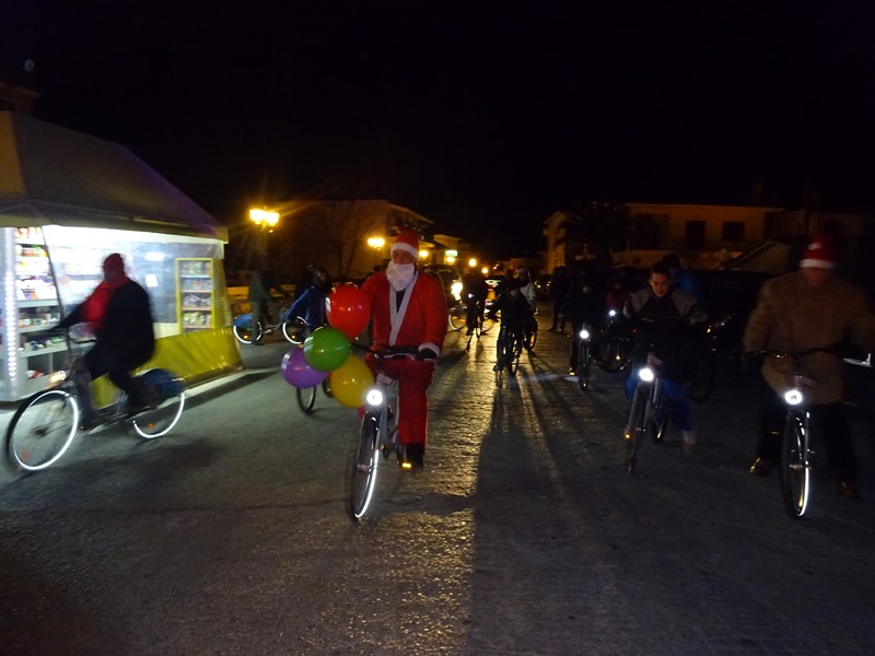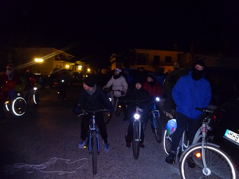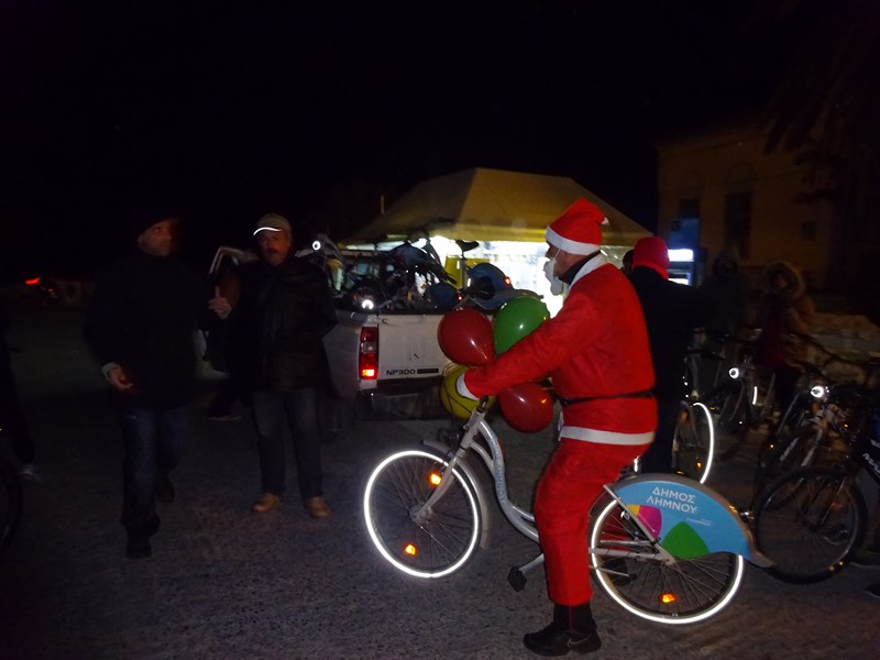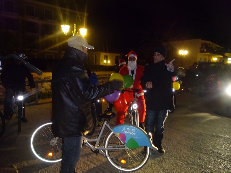 Στην ποδηλατοβόλτα συμμετείχαν Αι Βασίληδες με τα ποδήλατα του Δήμου, παιδιά αλλά και μεγαλύτεροι με τα ποδήλατά τους, οι οποίοι πέρασαν από τις γειτονιές της Μύρινας, μεταφέροντας τις ευχές τους για τη νέα χρονιά.