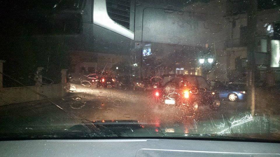 Η βροχή συνεχίζεται μέχρι αυτή την ώρα, με ολιγόλεπτα διαλείμματα στα οποία η ένταση μειώνεται, για να δυναμώσει και να συνεχίσει με την ίδια ένταση, λίγα λεπτά αργότερα.