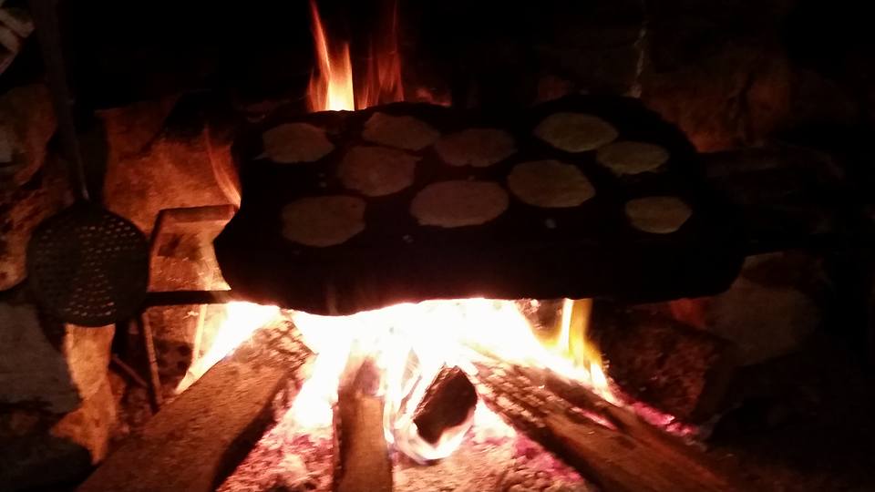 Στη συνέχεια, επάνω του απλώνεται ο χυλός σε µικρές δόσεις για να σχηµατιστούν τηγανόπιτες. Την άλλη ηµέρα, τις πίτες αυτές τις τηγανίζουν µε λίγο κρόκο αβγού και προσθέτουν κανέλα, πετιµέζι ή µέλι.