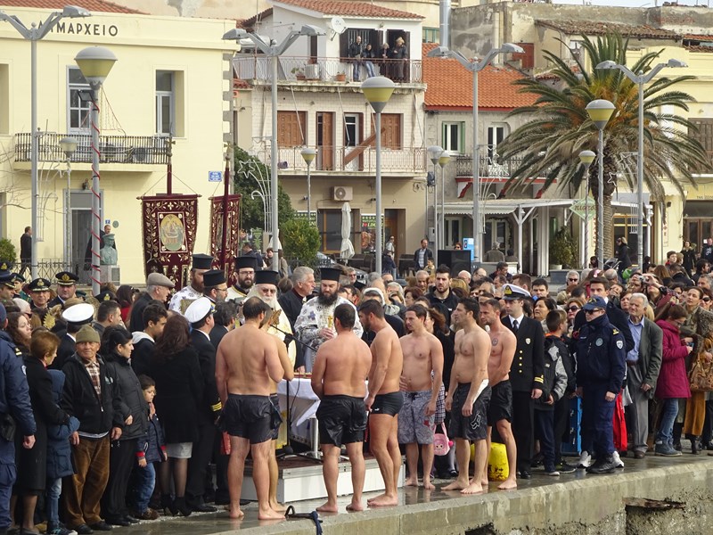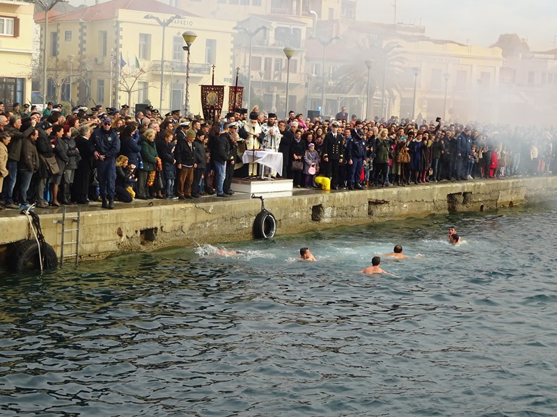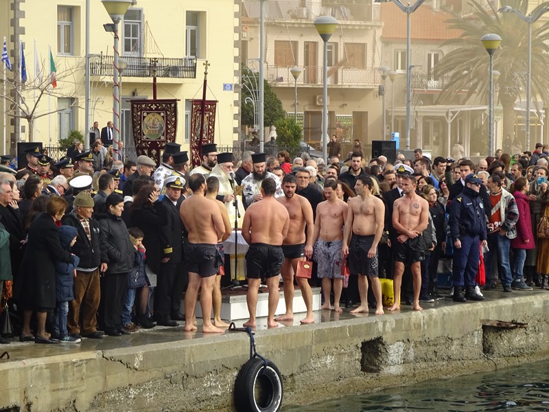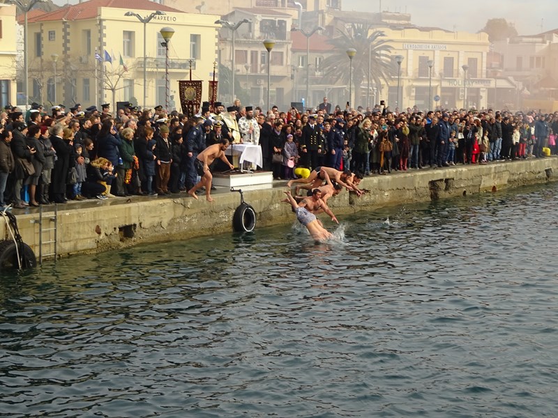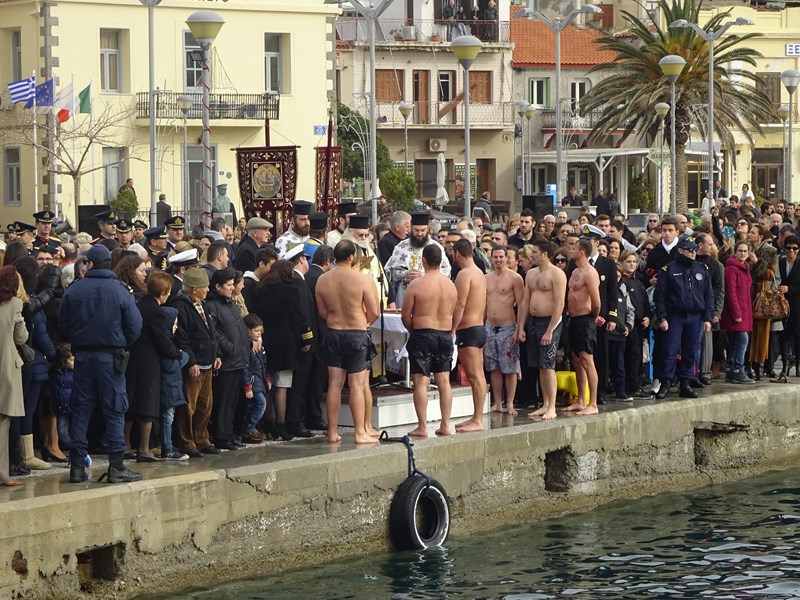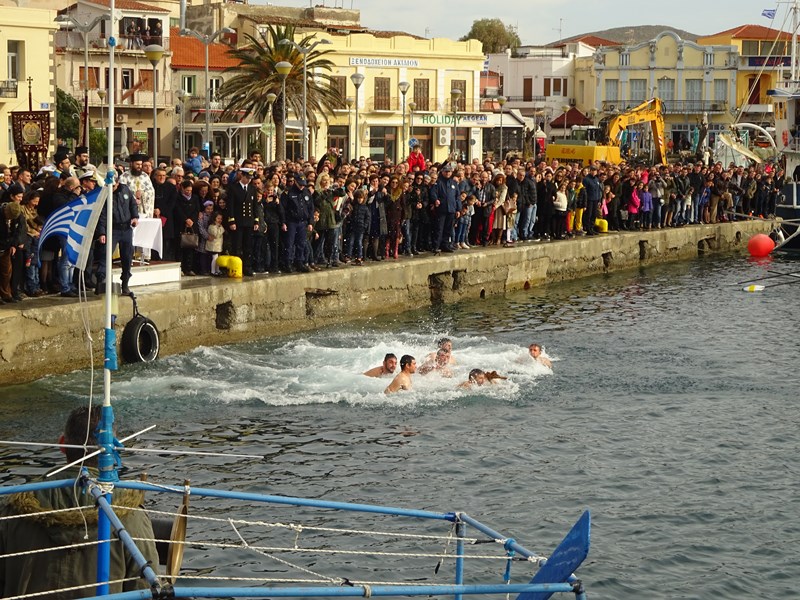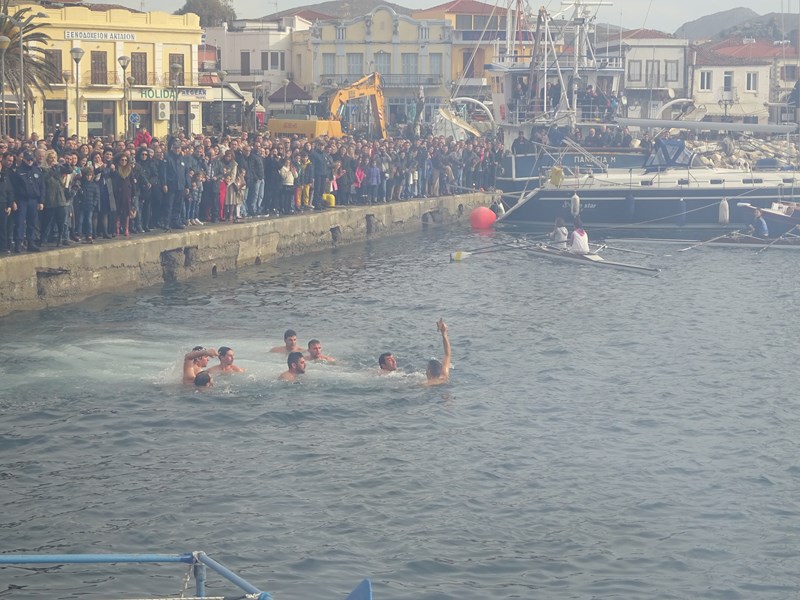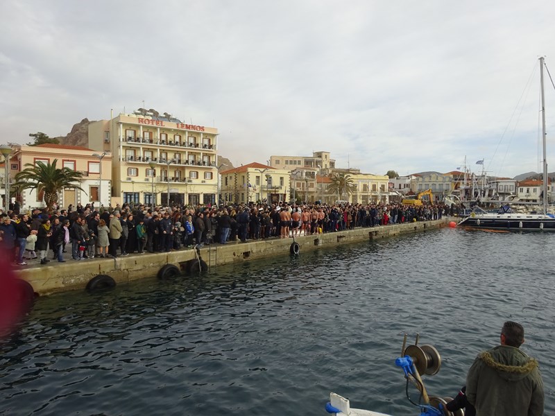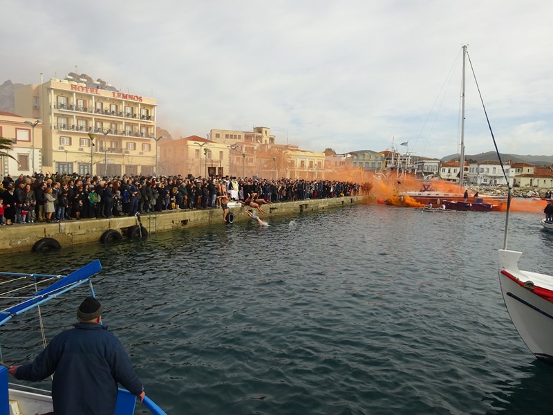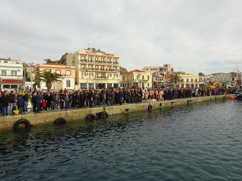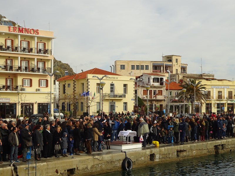 Στη Μύρινα, μετά την τέλεση της Θείας Λειτουργίας και την Ακολουθία του Μεγάλου Αγιασμού στον Ι.Μ. Ναό της Αγίας Τριάδας, ακολούθησε η τελετή κατάδυσης του Τιμίου Σταυρού στο παλιό λιμάνι, χοροστατούντος του Σεβασμιότατου Μητροπολίτη Λήμνου και Αγίου Ευστρατίου κ.κ. Ιεροθέου, παρουσία των αυτοδιοικητικών αρχών, της στρατιωτικής ηγεσίας, των σωμάτων ασφαλείας, κατοίκων του Δήμου καθώς και επισκεπτών.