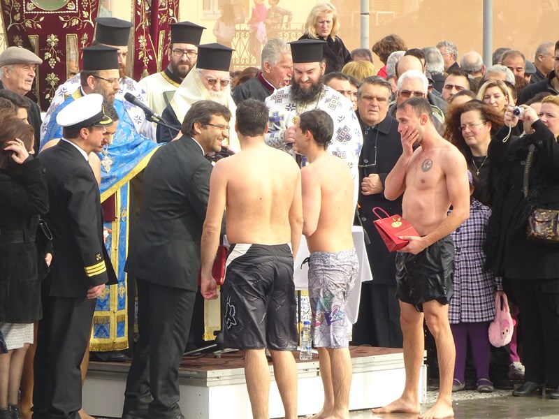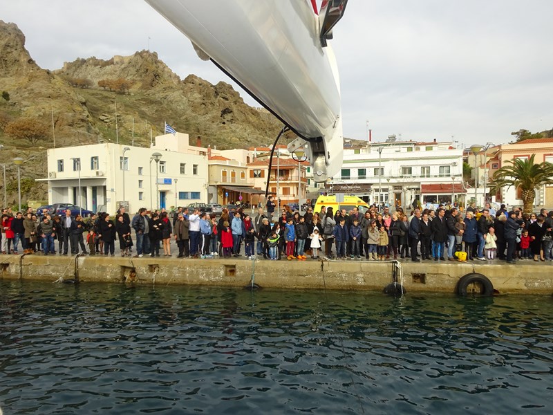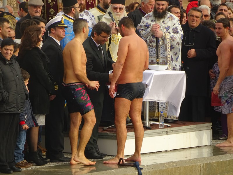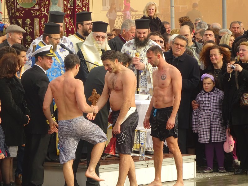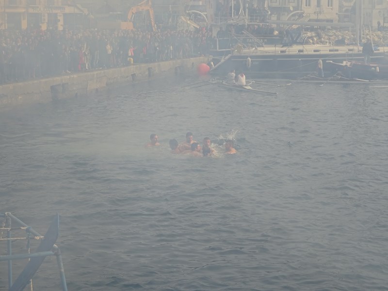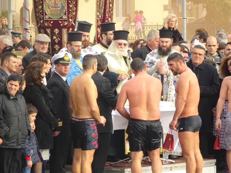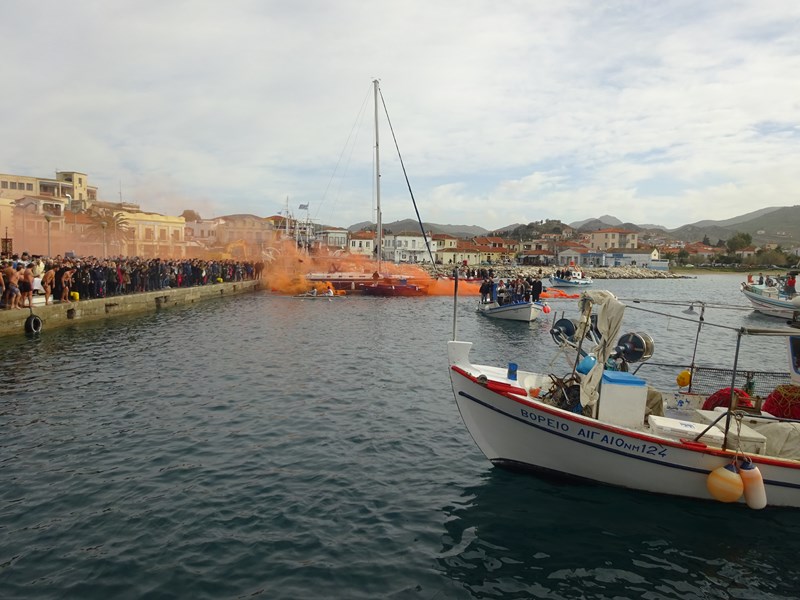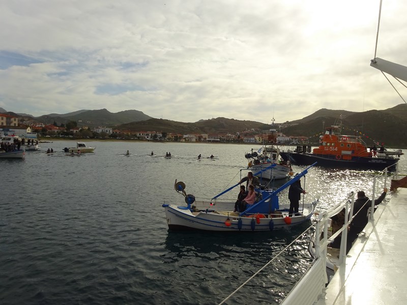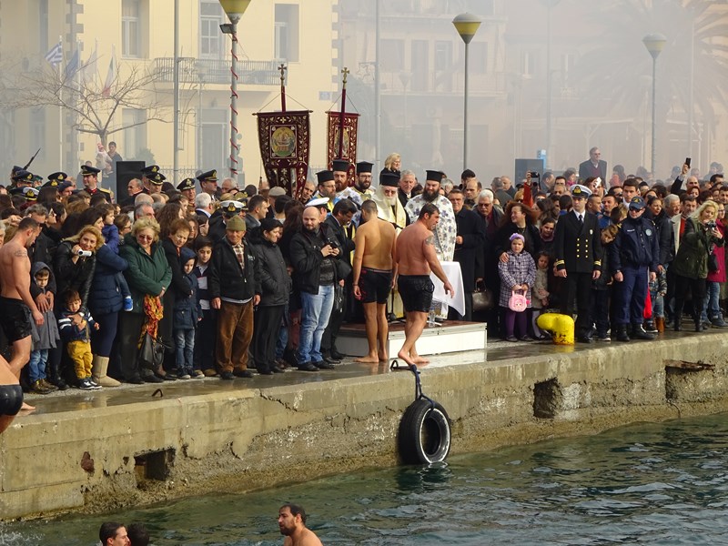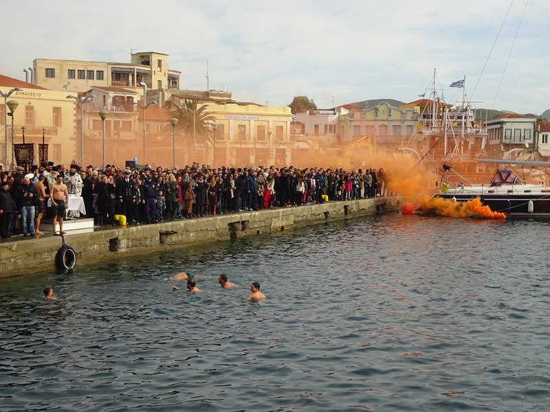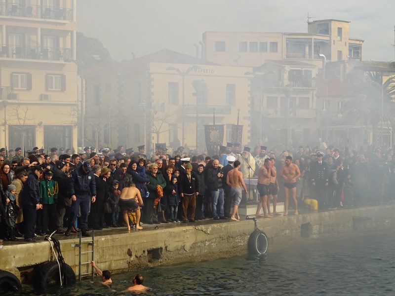 Στη Μύρινα, μετά την τέλεση της Θείας Λειτουργίας και την Ακολουθία του Μεγάλου Αγιασμού στον Ι.Μ. Ναό της Αγίας Τριάδας, ακολούθησε η τελετή κατάδυσης του Τιμίου Σταυρού στο παλιό λιμάνι, χοροστατούντος του Σεβασμιότατου Μητροπολίτη Λήμνου και Αγίου Ευστρατίου κ.κ. Ιεροθέου, παρουσία των αυτοδιοικητικών αρχών, της στρατιωτικής ηγεσίας, των σωμάτων ασφαλείας, κατοίκων του Δήμου καθώς και επισκεπτών.
