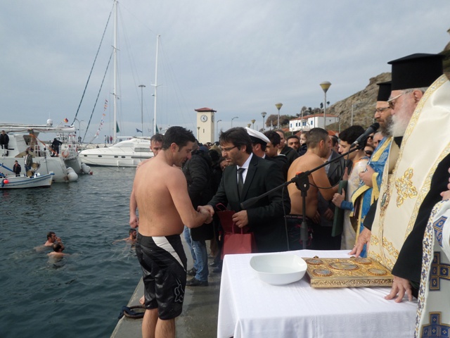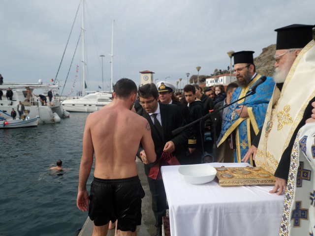 Η τελετή Κατάδυσης του Τιμίου Σταυρού έλαβε χώρα παρουσία των αυτοδιοικητικών αρχών, της στρατιωτικής ηγεσίας, των σωμάτων ασφαλείας, κατοίκων του Δήμου καθώς και επισκεπτών.