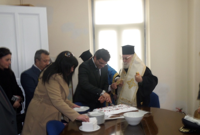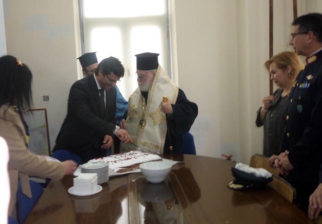 Μετά το πέρας των εκδηλώσεων για τον εορτασμό των Θεοφανίων, πραγματοποιήθηκε στο Δημαρχείο η καθιερωμένη κοπή της πρωτοχρονιάτικης πίτας της Δημοτική Αρχής, με τις ευλογίες του Σεβασμιότατου Μητροπολίτη Λήμνου και Αγίου Ευστρατίου κ.κ. Ιερόθεου.