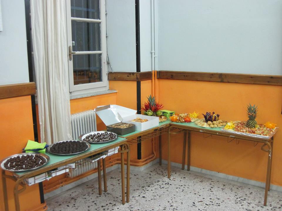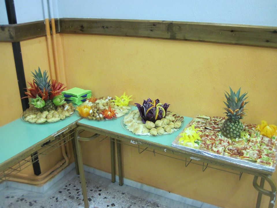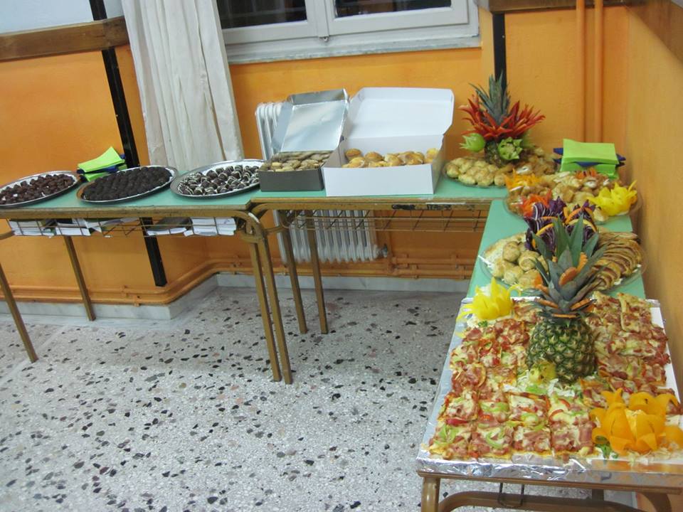 Το τμήμα μαγειρικής ανέλαβε το catering της εκδήλωσης: Το κάθε τμήμα έκανε απο μια βασιλόπιτα (πλέον είμαστε πολλοί! Δεν φτάνει μια!) και το 1ο εργαστηριακό τμήμα με τον καθηγητή τους κ. Κελεμένη ανέλαβε τον γλυκό μπουφέ και το 2ο τμήμα με τον κ. Ντίνο τον αλμυρό.