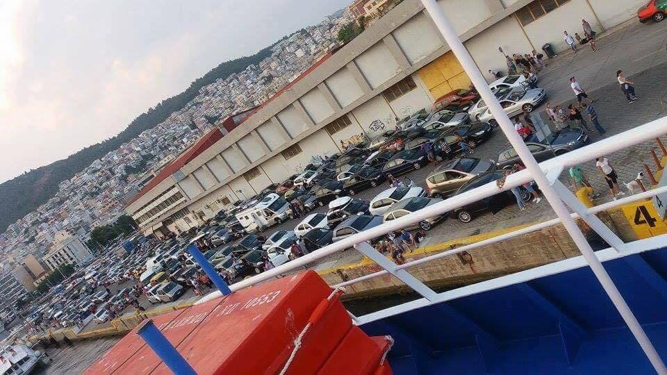 Φίλος αναγνώστης μάς έστειλε βίντεο και φωτογραφίες, ενδεικτικά του τι συνέβαινε το Σάββατο στο λιμάνι της Καβάλας, τη στιγμή που οι εκατοντάδες τουρίστες ανέμεναν να επιβιβαστούν στο πλοίο με προορισμό τους τη Λήμνο.
