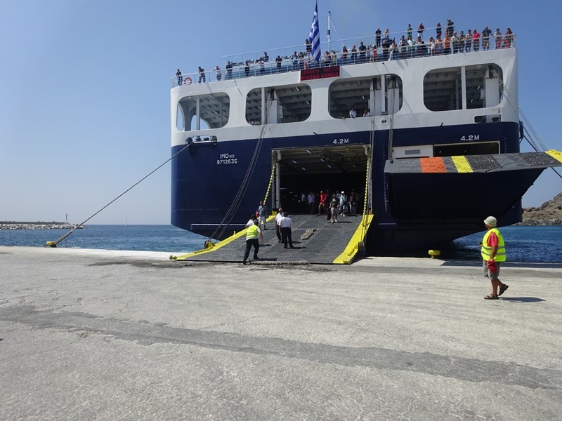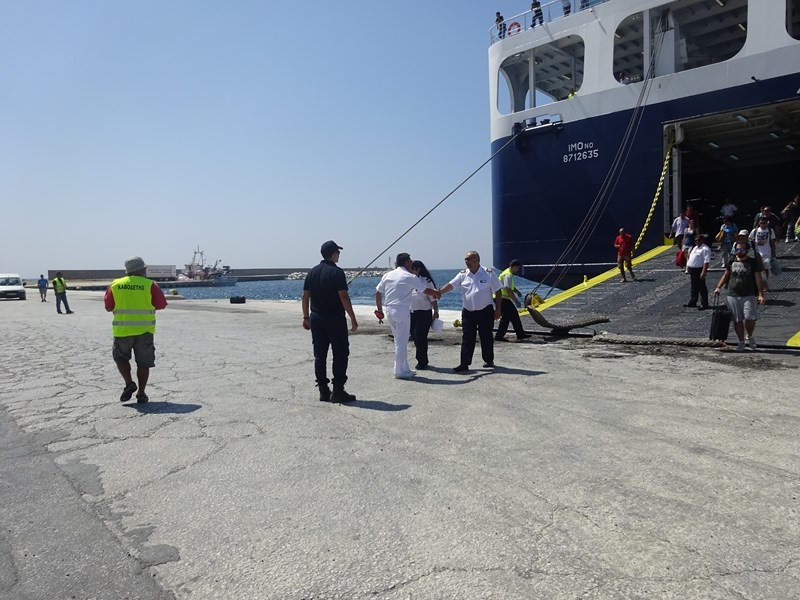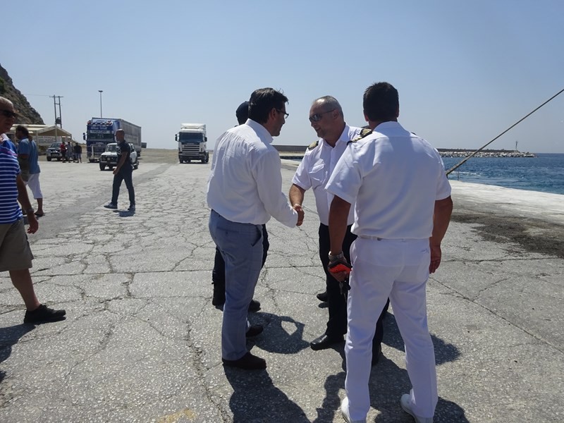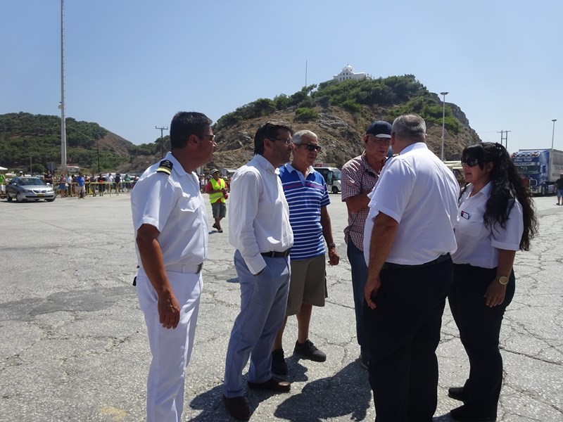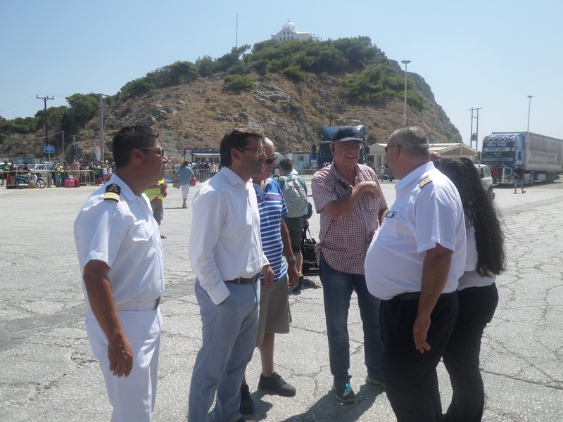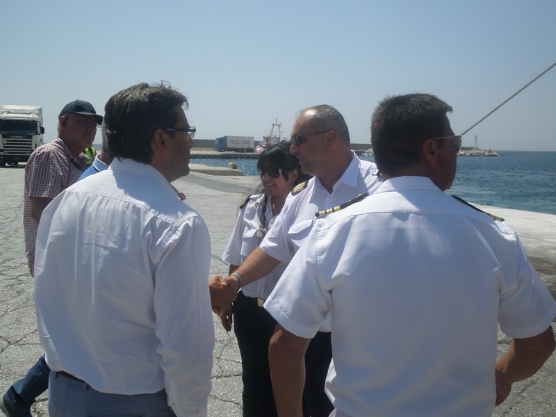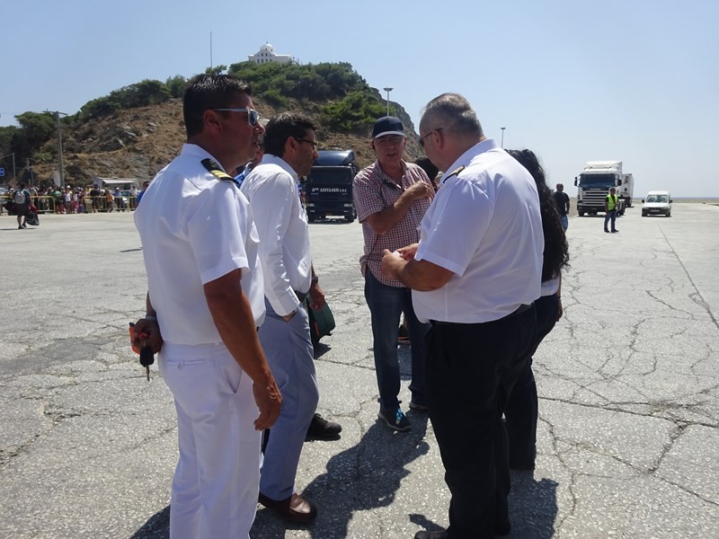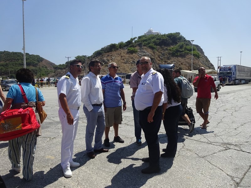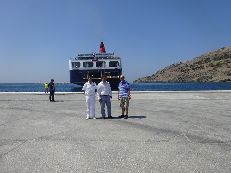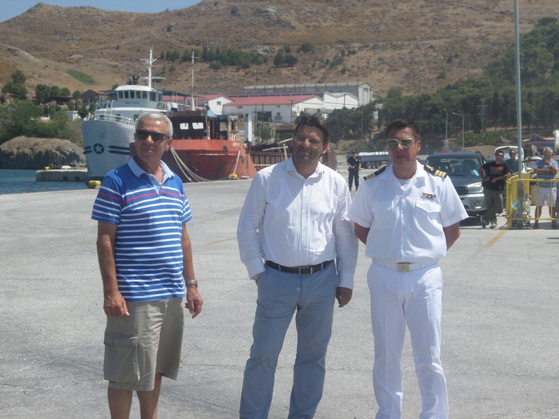 Ο Δήμαρχος Λήμνου κ. Δημήτρης Μαρινάκης, συνοδευόμενος από τον Λιμενάρχη Μύρινας κ. Γιώργο Αρβανίτη και τον Πρόεδρο του Δημοτικού Λιμενικού Ταμείου Λήμνου κ. Χαράλαμπο Δαλαβίτσο, επισκέφθηκε σήμερα Δευτέρα 1 Αυγούστου το ΕΓ/ΟΓ πλοίο «Νήσος Σάμος», το οποίο πραγματοποίησε το πρώτο του ταξίδι προς το νησί μας, συνδέοντάς το με τη Θεσσαλονίκη, τη Μυτιλήνη, τα Μεστά της Χίου και τον Πειραιά.
