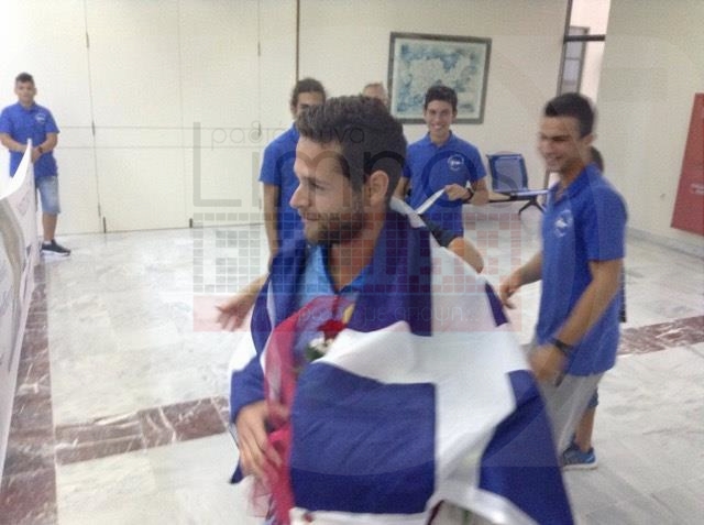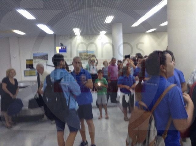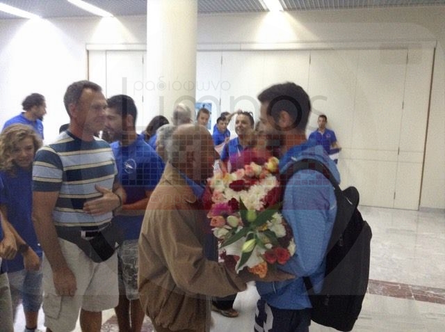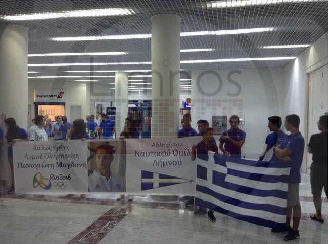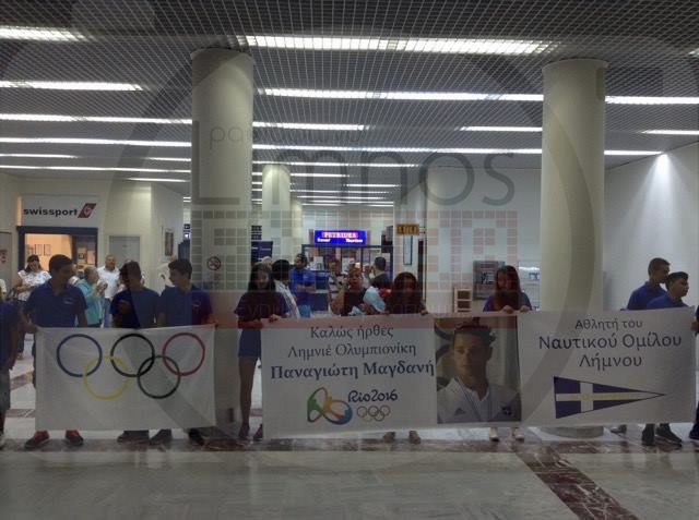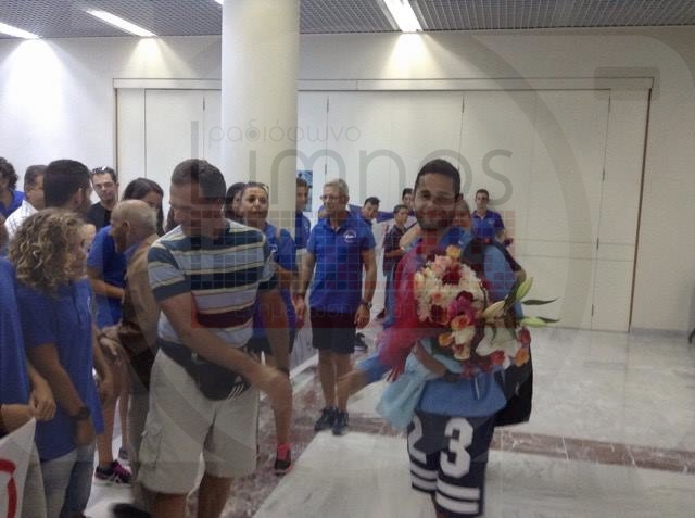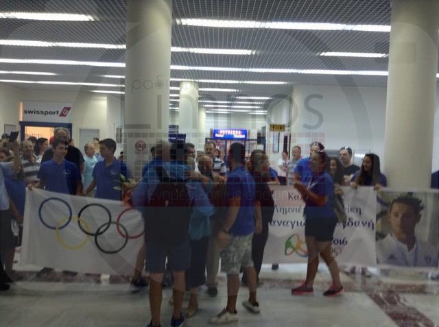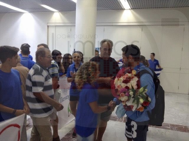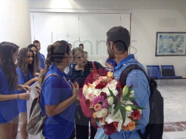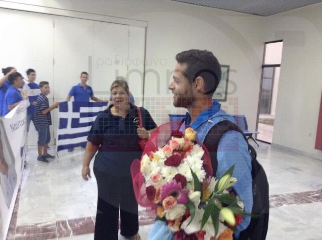 Στο αεροδρόμιο «Ήφαιστος», από νωρίς βρίσκονταν οι γονείς και παππούδες του, αλλά και η αθλητική του ομάδα, τα μέλη και οι αθλητές του Ναυτικού Ομίλου Λήμνου οι οποίοι του επιφύλαξαν ζεστή υποδοχή.