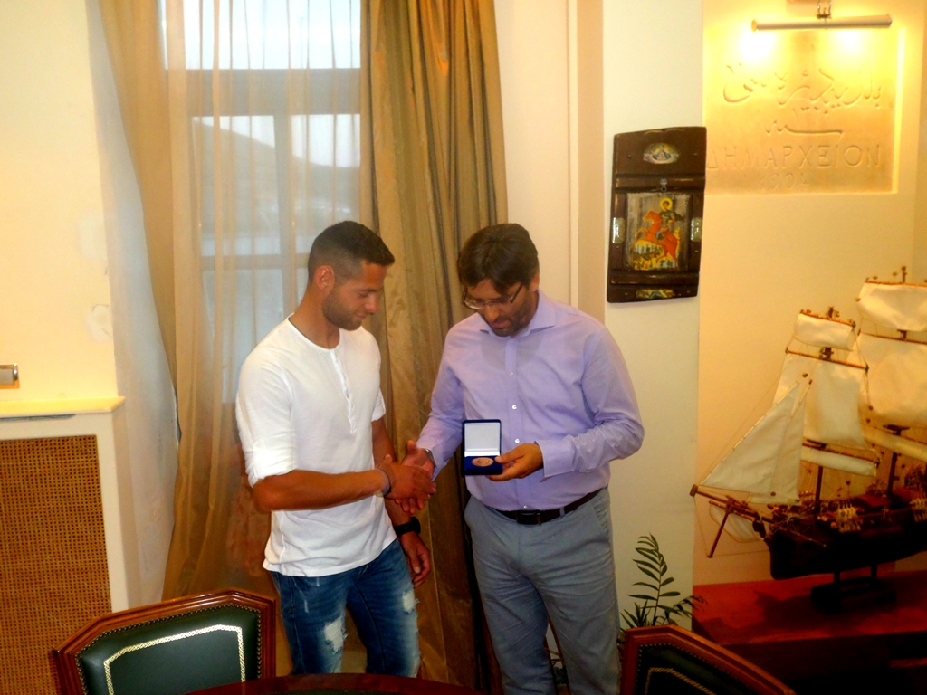 Ο Δήμαρχος εξέφρασε τα συγχαρητήριά του στον Παναγιώτη Μαγδανή, στους γονείς του και τους προπονητές του για τις μεγάλες επιτυχίες στις πρόσφατες αθλητικές διοργανώσεις της Ολυμπιάδας του Ρίο και του Παγκόσμιου Πρωταθλήματος του Ρότερνταμ, αλλά και τη συνολική πορεία του, επέδωσε στους δύο αθλητές το έμβλημα του Δήμου και προσέφερε την εικόνα του Πολιούχου της Λήμνου Αγίου Σώζοντος.