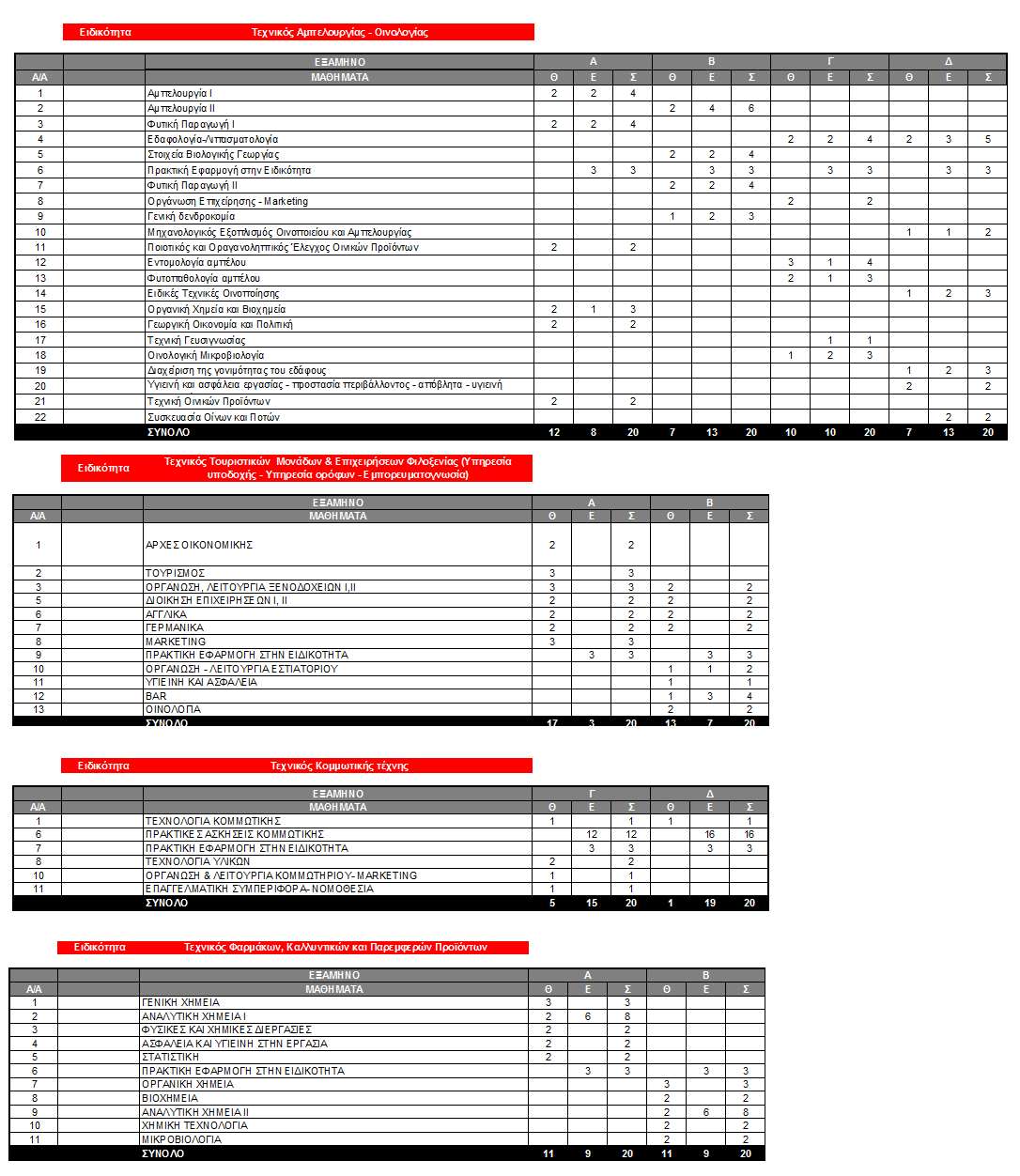 •Πτυχιούχοι Οινολόγοι τριτοβάθμιας εκπαίδευσης