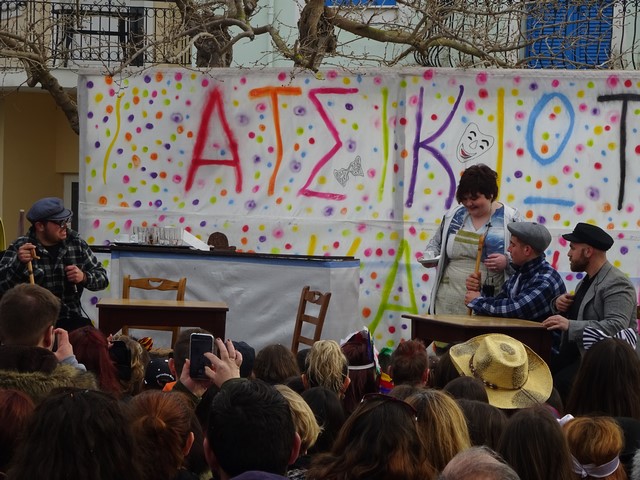 Αμέσως μετά, οι καρναβαλιστές, εμπνευσμένοι από την καθημερινότητα και την επικαιρότητα καυτηρίασαν τόσο τοπικά όσο και εθνικά θέματα που τις προηγούμενες ημέρες βρέθηκαν στο επίκεντρο των συζητήσεων.