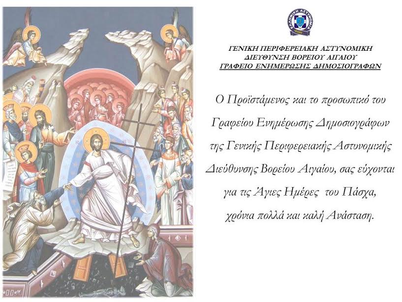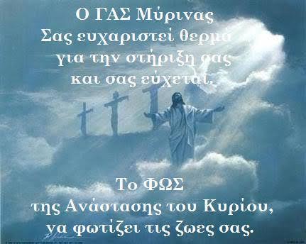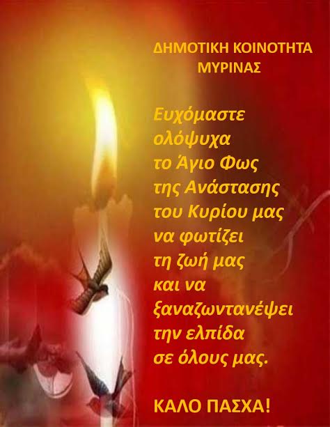 Η Ανάσταση του Κυρίου να φέρει σε όλους μας το ελπιδοφόρο μήνυμα, για αγάπη , ειρήνη, κοινωνική προσφορά και αλληλεγγύη, που τέτοιες μέρες αποτελεί την «ύψιστη πράξη» προς τον συνάνθρωπο μας .
