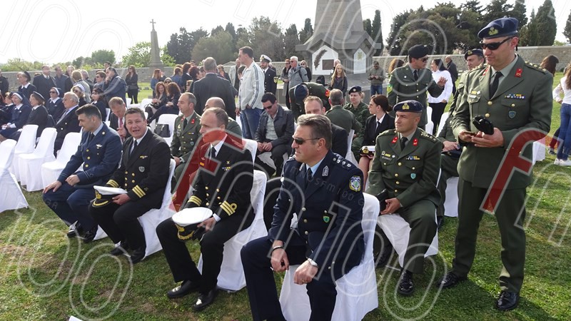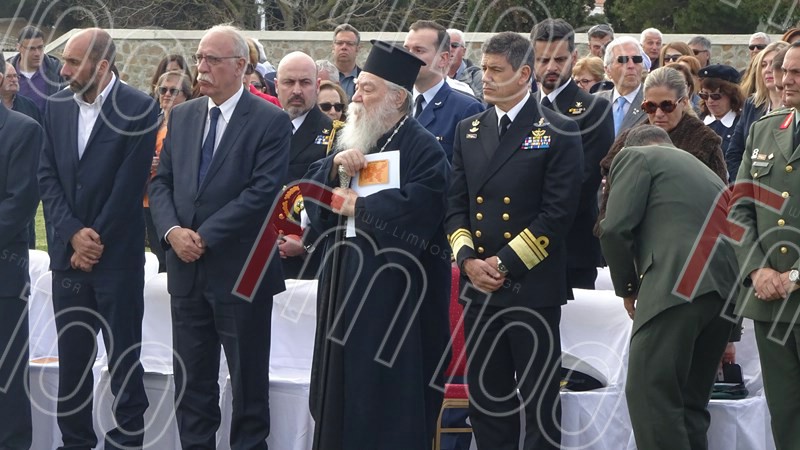 Παρευρέθηκαν, μεταξύ άλλων, ο πρέσβης του Καναδά στην Ελλάδα Κιθ Μόριλ, ο επιτετραμμένος της Αυστραλίας Αντρέα Κάρλο Μπίτζι, ο αμυντικός ακόλουθος της Πρεσβείας της Γαλλίας στης Ελλάδα Συνταγματάρχης Ρίτσαρντ Κόλμαν, ο επίτιμος γενικός πρόξενος της Νέας Ζηλανδίας Κωνσταντίνος Κοτσιλίνης, ο βουλευτής νομού Λέσβου Γιώργος Πάλλης, η Περιφερειάρχης Βορείου Αιγαίου Χριστιάνα Καλογήρου, ο Αντιπεριφερειάρχης Αγροτικής Οικονομίας Κωνσταντίνος Αδαμίδης, ο Αντιπεριφερειάρχης Μεταφορών και Επικοινωνιών Γιάννης Ξενάκης, ο Έπαρχος Λήμνου Ευάγγελος Γιαρμαδούρος, ο Δήμαρχος Λήμνου Δημήτρης Μαρινάκης, καθώς και εκπρόσωποι της θρησκευτικής και στρατιωτικής ηγεσίας του τόπου, σωμάτων ασφαλείας, φορέων και συλλόγων.