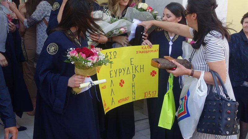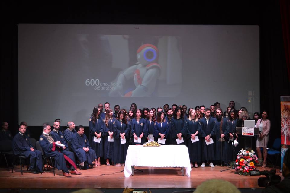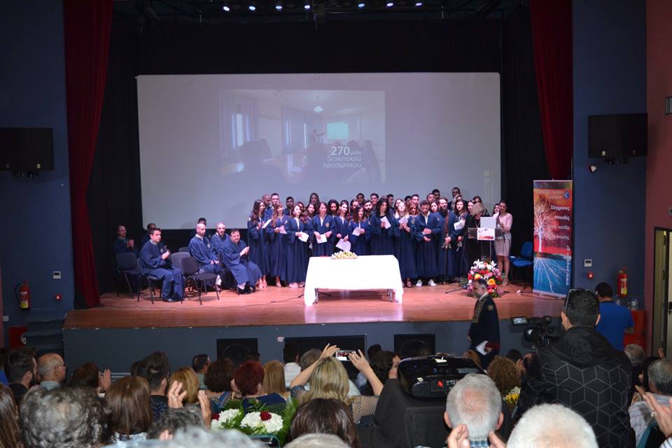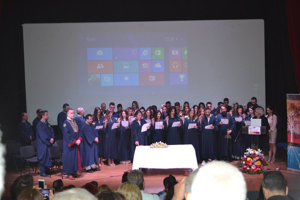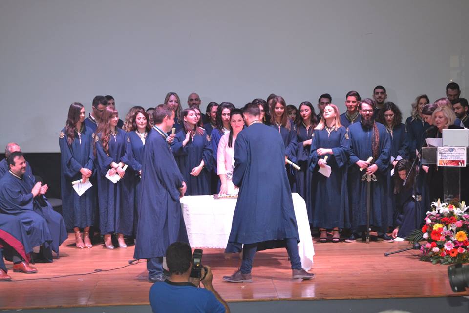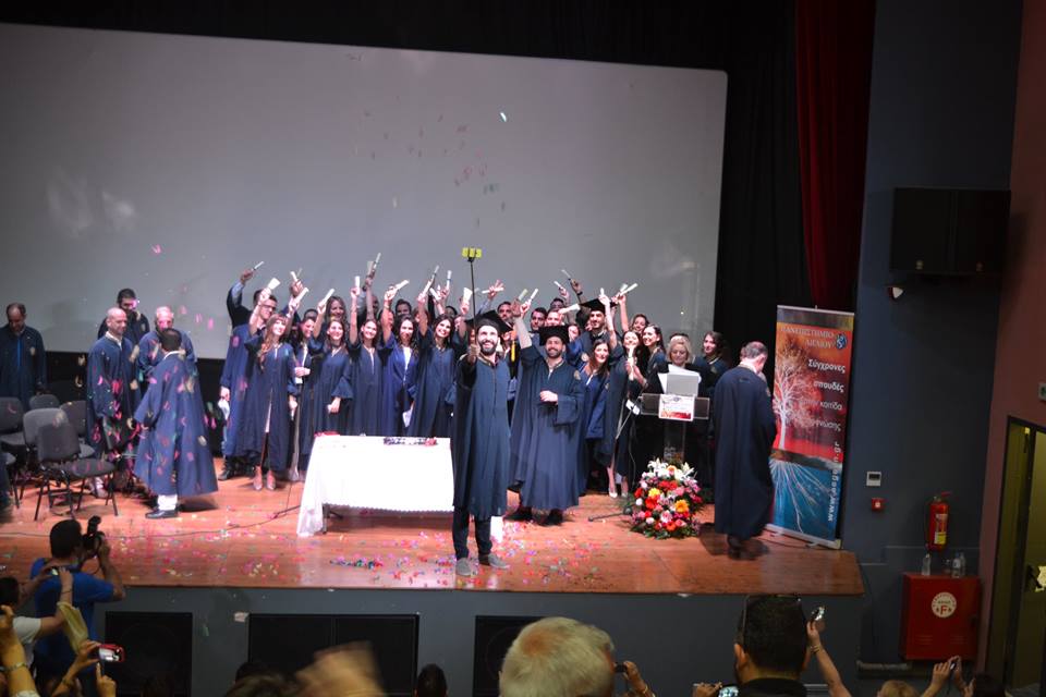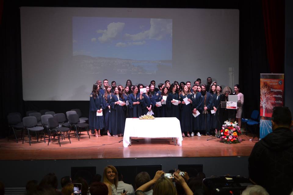 Η τελετή Καθομολόγησης πραγματοποιήθηκε στις 12:00 το μεσημέρι στο κινηματοθέατρο «Μαρούλα», με 38 φοιτητές να παραλαμβάνουν το πτυχίο τους, μεταξύ των οποίων και δυο τελικά Λημνιοί, ο Νίκος Παλαιολογούδιας από τον Άγιο Δημήτριο και η Αιμιλία Μπελίτσου απο τα Καμίνια.