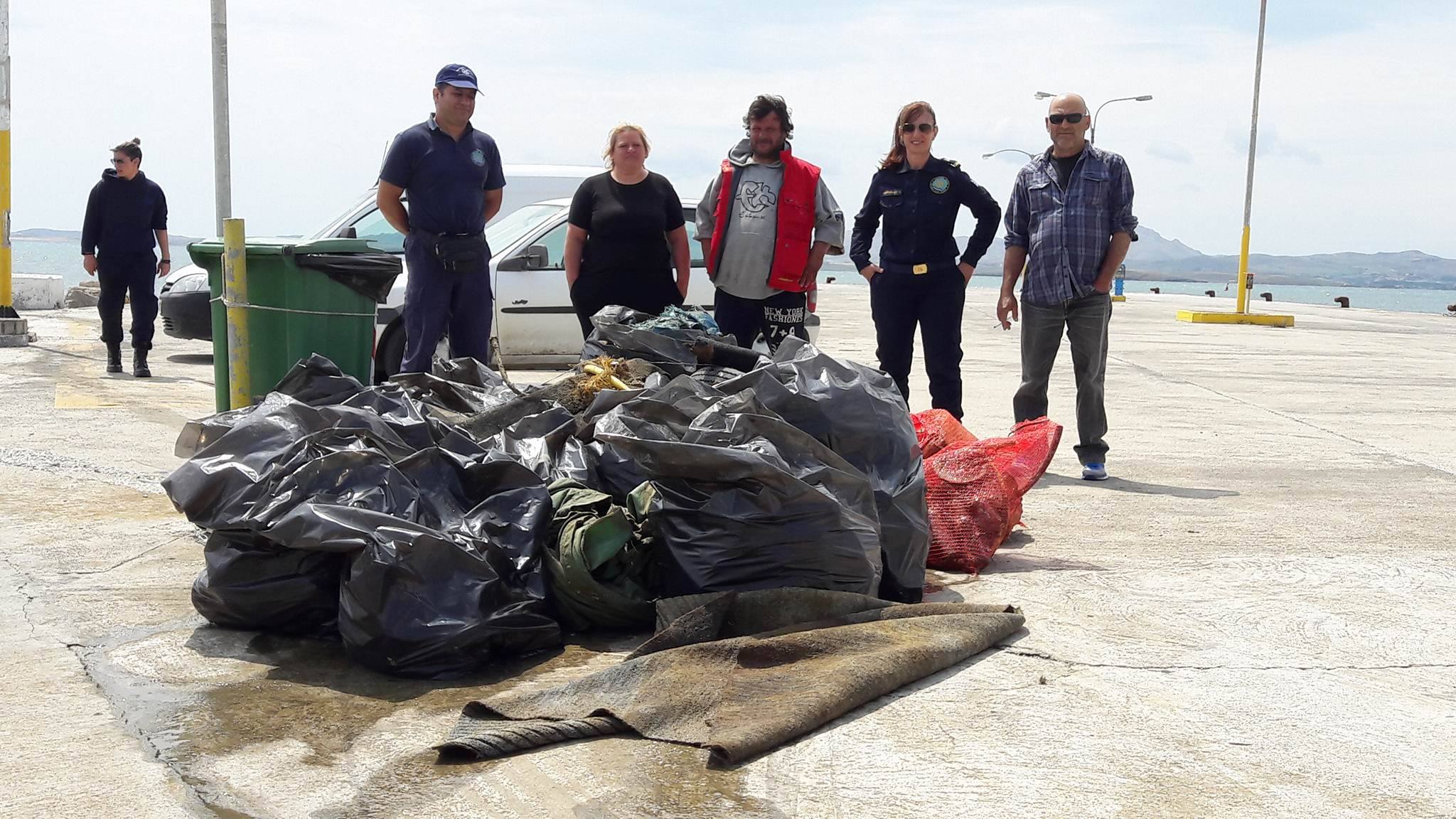 Από καταδυτικό συνεργείο – δύτες και επαγγελματικό σκάφος πραγματοποιήθηκε κατάδυση στο βυθό του λιμανιού, οι οποίοι περισυνέλλεξαν μεγάλο όγκο απορριμμάτων ανασύροντας πλαστικά μπουκάλια, κουτάκια αλουμινίου, σακούλες, μεταλλικά και πλαστικά αντικείμενα τα οποία επιβαρύνουν το θαλάσσιο περιβάλλον.