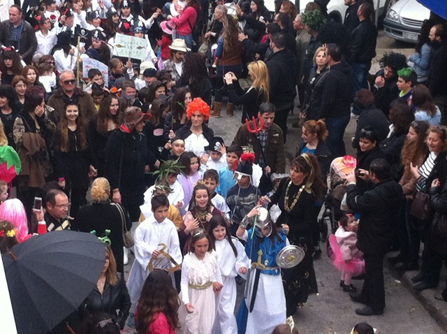 Οι λίγες ψιχάλες που έπεσαν την ώρα της λήξης της παρέλασης, δεν ήταν ικανές να εξοστρακίσουν την καλή διάθεση του κόμου.