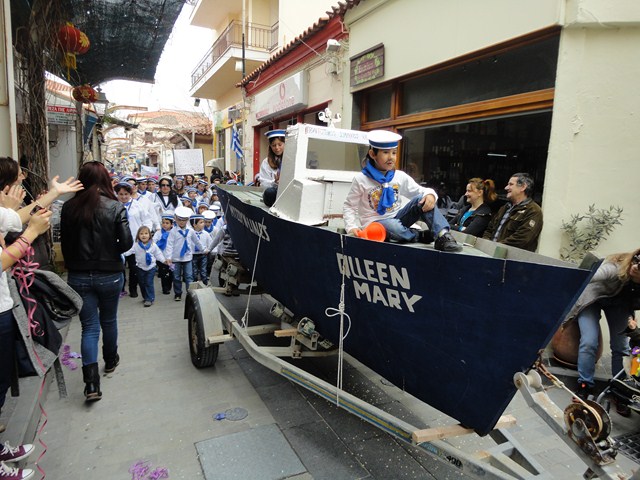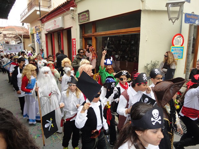 Ακολούθησε ο Πολιτιστικός Σύλλογος Κάσπακα με την κορβέτα των Ελληνικών θαλασσών Κούνα Μαρία. Το γκρουπ του 2ου Νηπιαγωγείου Μύρινας, συμμετείχε στην παρέλαση με θέμα Πρίγκηπες & Πριγκίπησες. Οι "Ο,τι να ναι" του Γυμνασίου Λιβαδοχωρίου πήραν σειρά μετά από λίγο, ενώ λίγο νωρίτερα, η αγορά της Μύρινας κατακλύστηκε από τους Σούπερ Ήρωες του 1ου Νηπιαγωγείου.