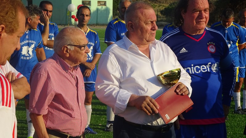 Πριν την σέντρα του μεγάλου φιλικού αγώνα μεταξύ των παλαίμαχων της Λήμνου και των βετεράνων του Ολυμπικαού, τιμήθηκαν μεταξύ άλλων ο Δήμαρχος Λήμνου Δημήτριος Μαρινάκης και ο Παντελής Μπούρμπουρας, Πρόεδρος του ομώνυμου Ιδρύματος που ασχολείται με την παροχή βοήθειας στους τομείς της φιλανθρωπικής και κοινωφελούς δραστηριότητας, καθώς και την ανάπτυξη και υποστήριξη αυτών των τομέων προς το δημόσιο συμφέρον.