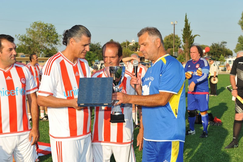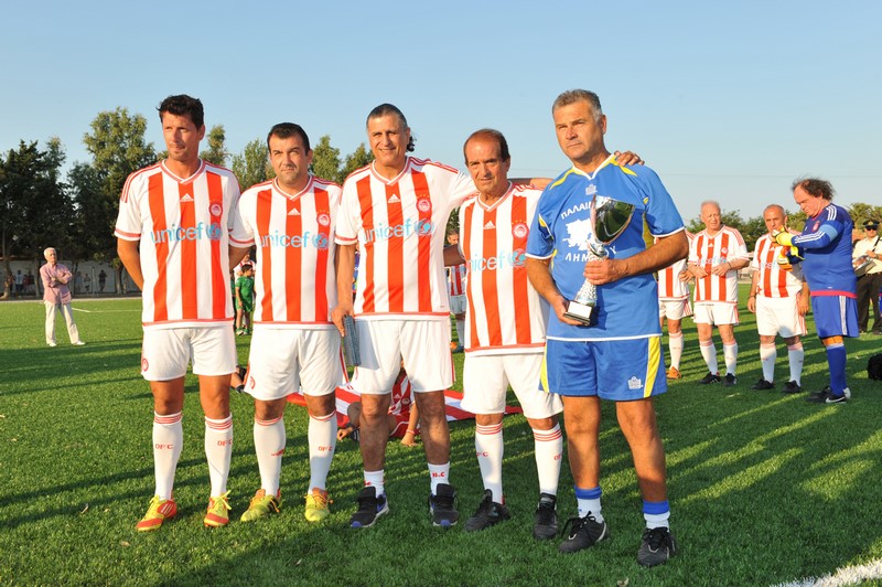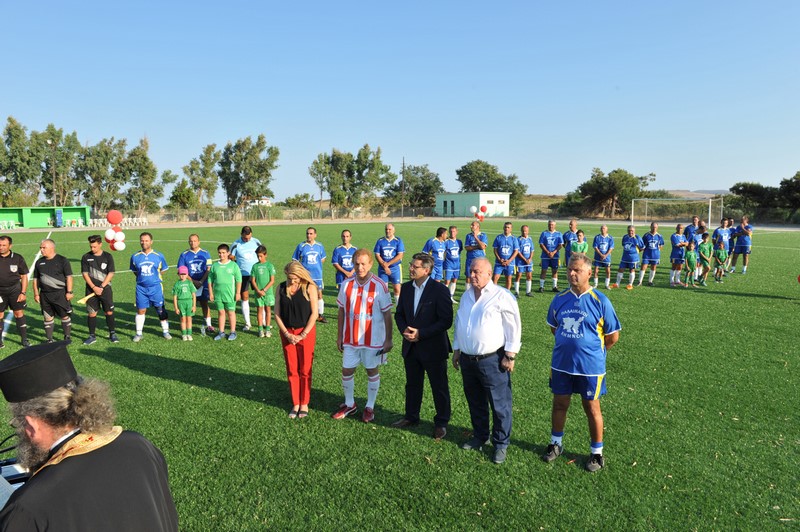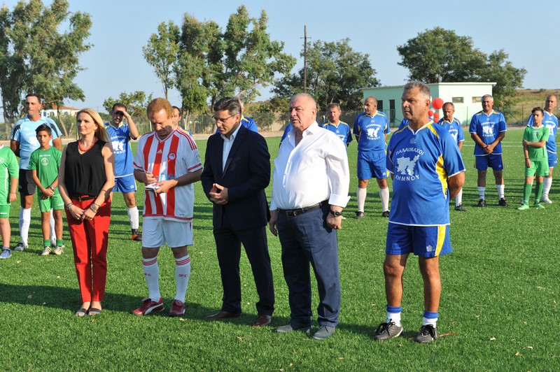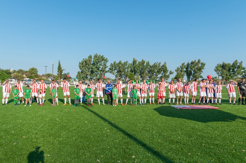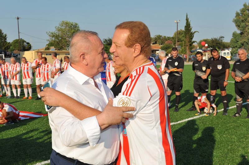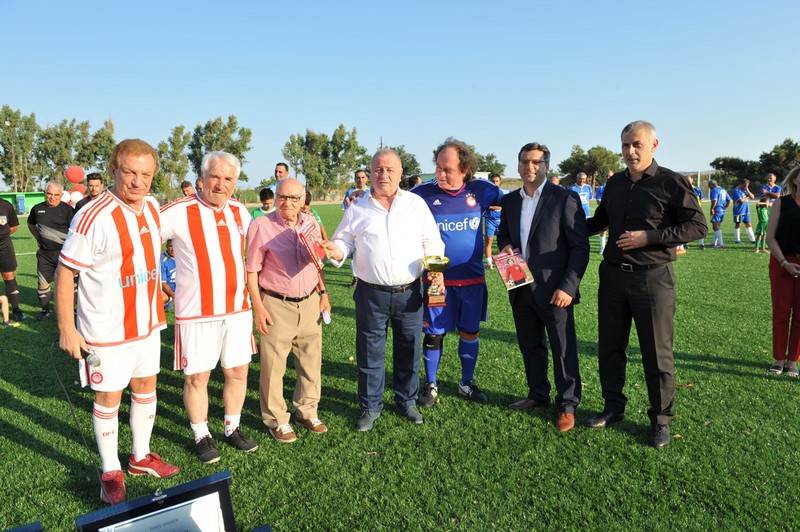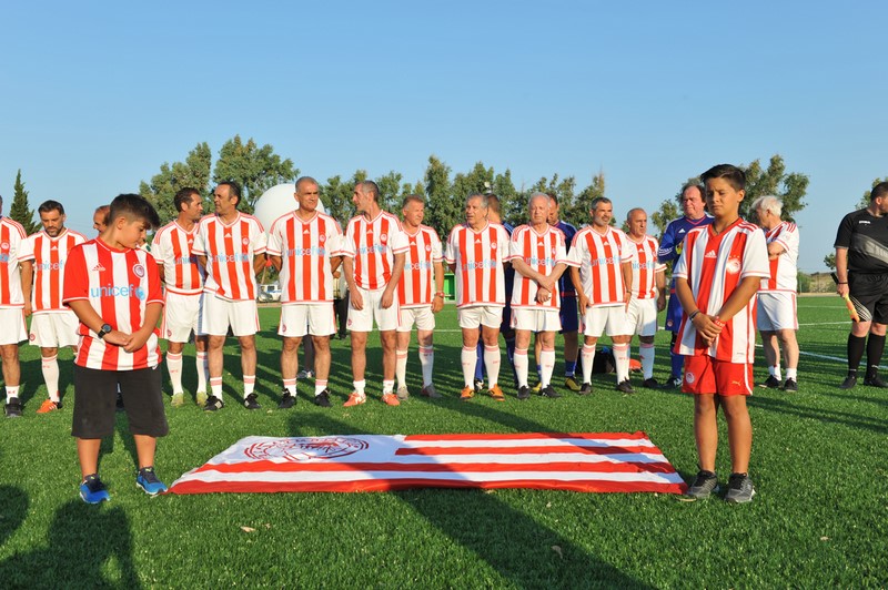 Μεγάλη στιγμή και μεγάλη τιμή αποτέλεσε επίσης η εμφάνιση των Βετεράνων Ποδοσφαιριστών του Ολυμπιακού, του Προέδρου τους, κ. Γιώργου Δαρίβα και του Γενικού Γραμματέα κ. Αντώνη Γλύκα. Οι Βετεράνοι του Ολυμπιακού λάμπρυναν με την παρουσία τους την τελετή των εγκαινίων συμμετέχοντας σε φιλικό αγώνα με τους Παλαίμαχους Λήμνου και κερδίζοντας με 5-1.