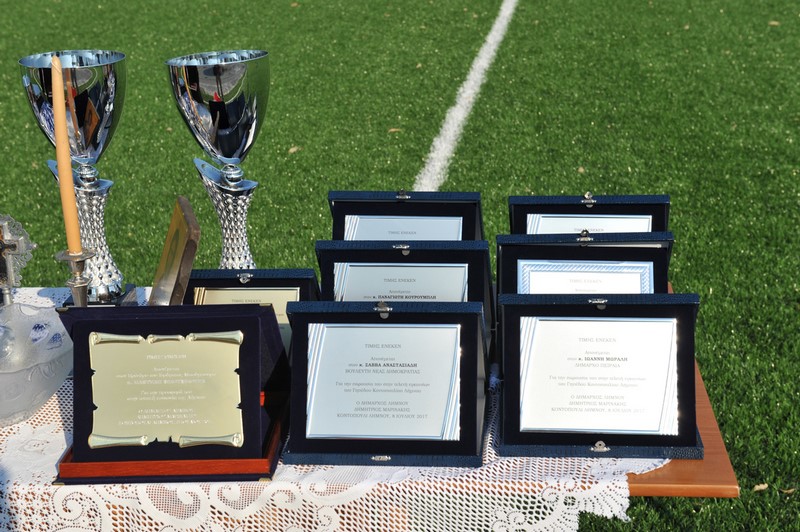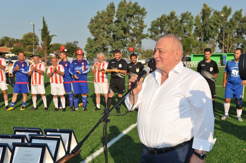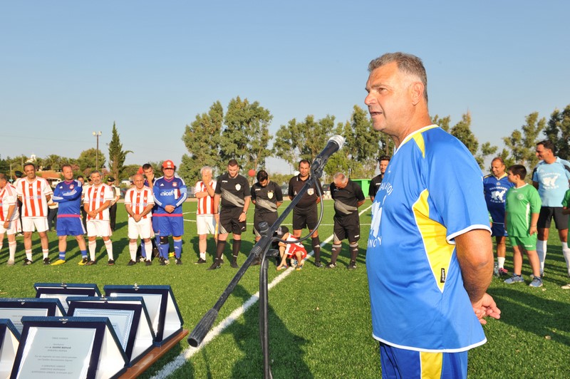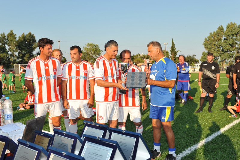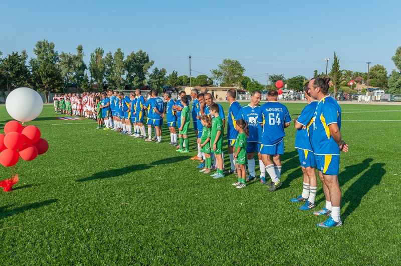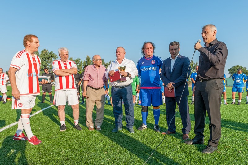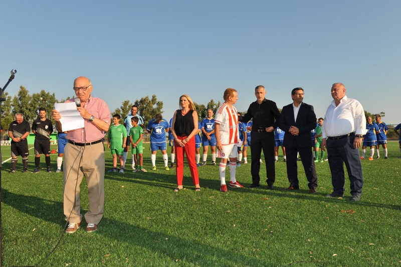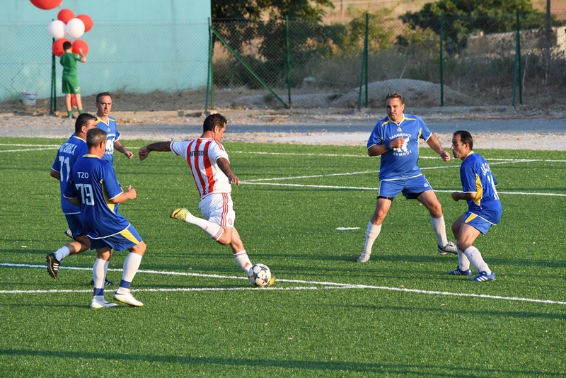 Μεγάλη στιγμή και μεγάλη τιμή αποτέλεσε επίσης η εμφάνιση των Βετεράνων Ποδοσφαιριστών του Ολυμπιακού, του Προέδρου τους, κ. Γιώργου Δαρίβα και του Γενικού Γραμματέα κ. Αντώνη Γλύκα. Οι Βετεράνοι του Ολυμπιακού λάμπρυναν με την παρουσία τους την τελετή των εγκαινίων συμμετέχοντας σε φιλικό αγώνα με τους Παλαίμαχους Λήμνου και κερδίζοντας με 5-1.