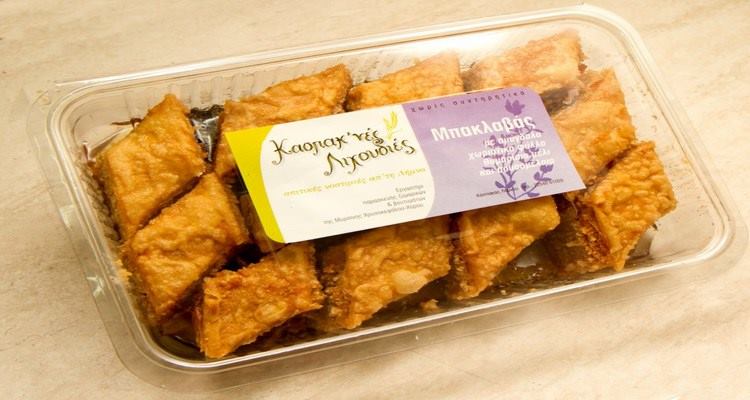 Οι λιχουδιές αυτές περιλαμβάνουν παραδοσιακά γλυκά, ζυμαρικά, βουτήματα, πίτες και τυροπιτάκια, χωρίς συντηρητικά, φτιαγμένα από αγνά υλικά όπως το αλεύρι από σκληρό σιτάρι, γάλα αιγοπρόβειο και αυγά χωριάτικα που παράγονται στη Λήμνο, στα οικογενειακά κτήματα.