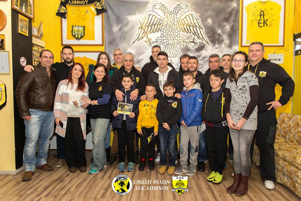 Ο αρχηγός που θα τιμηθεί στον αποψινό χορό της Ένωσης Φίλων ΑΕΚ Λήμνου, μετά την άφιξή του στο νησί, επισκέφθηκε το club των κιτρινόμαυρων, καθώς και την ακαδημία ποδοσφαίρου, όπου συνομίλησε με τους φίλους του δικέφαλου και υπέγραψε αυτόγραφα.