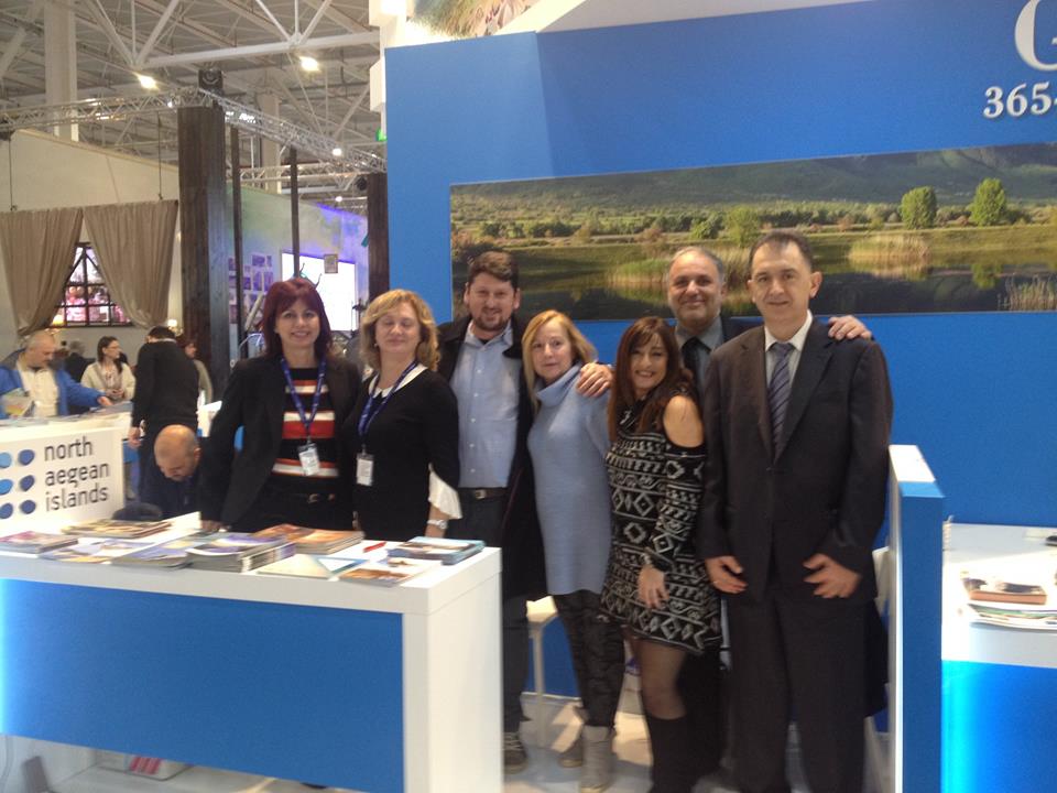 Στο περίπτερο του ΕΟΤ, στο οποίο βρίσκεται και η Περιφέρεια Β.Αιγαίου, ο Πρόεδρος της ΑΜΚΕ κ.Σφενδύλης Δημήτρης και ο Αντιπρόεδρος της Ένωσης Ξενοδόχων κ.Ματζάρης Δημήτρης,πραγματοποιούν συναντήσεις με τουριστικούς πράκτορες με σκοπό την προβολή και την προώθηση της Λήμνου.