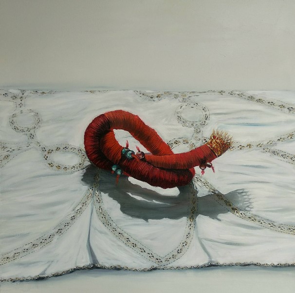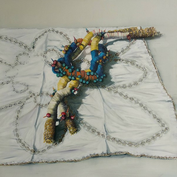 "Τελετουργικά", μαγικά αντικείμενα προστασίας και αποτροπής που ανακαλούν παραδοσιακά φυλαχτά. Και άλλα, απροσδιόριστα και εύκαμπτα, με περίτεχνους κόμπους και δεσίματα. Αντικείμενα που έρχονται να ανιχνεύσουν αχαρτογράφητες και μυστικές πτυχές του γυναικείου ψυχισμού, να δοκιμάσουν και να ξορκίσουν τους φόβους και τις ανασφάλειες, να μορφοποιήσουν τις στιγμές του λαβώματος και της απώλειας, της ερωτικής έλξης και της βίας, της αισιοδοξίας και της υπέρβασης».