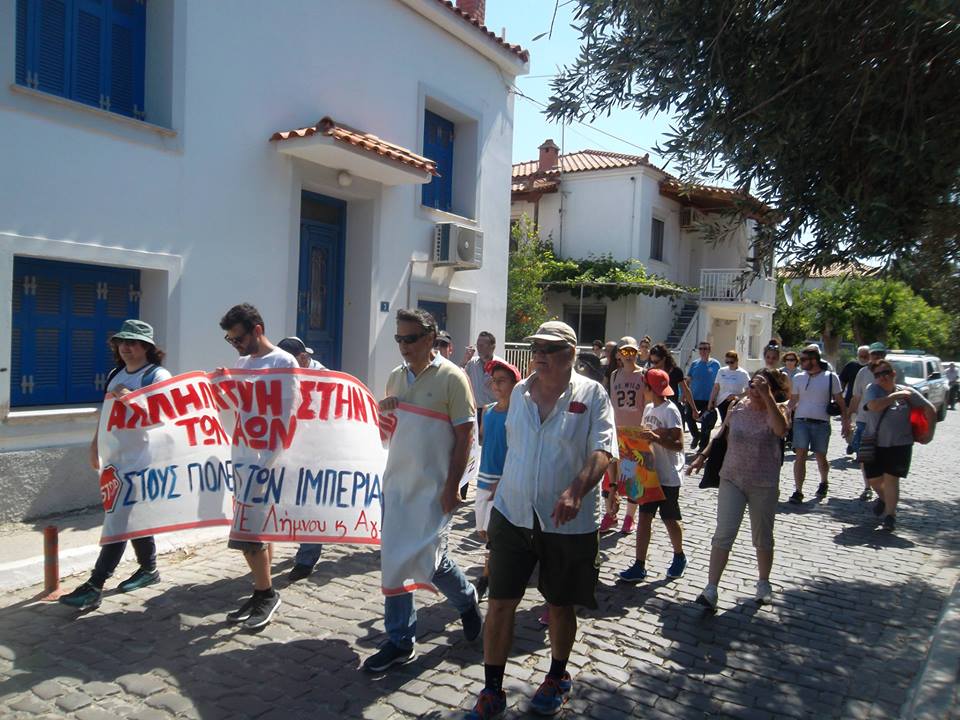 Η πορεία ξεκίνησε στις 10 π. μ. από την Παλιά ΔΕΗ και κατέληξε στο Δημαρχείο της Μύρινας. Στο τέλος της πορείας πραγματοποιήθηκε ομιλία και οι παιδικές χορωδίες του 2ου Δημοτικού Σχολείου Μύρινας και του Ωδείου Λήμνου τραγούδησαν για την ειρήνη.
