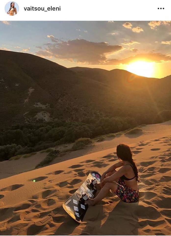 Ιδιαίτερα στο instagram, ανέβασε φωτογραφία από τον ερχομό της στο νησί, με το πλοίο, από τις αμμοθύνες, από παραλίες που έχει επισκεφτεί και φυσικά αρκετές ακόμη.