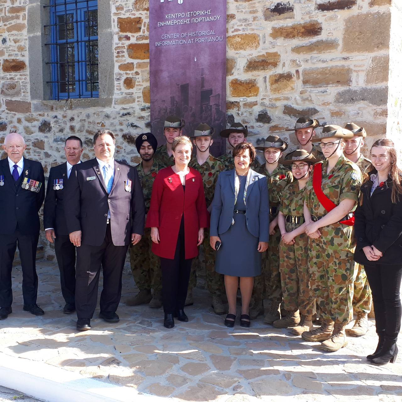 Η κ. Καλογήρου πραγματοποίησε επίσκεψη και περιήγηση στο Κέντρο Ιστορικής Ενημέρωσης Πορτιανού με στρατιωτικούς ακολούθους από τη Γερμανία, τον Καναδά, τη Μεγάλη Βρετανία, την Αυστραλία, εκπροσώπους πρεσβειών από τον Καναδά, τη Νέα Ζηλανδία, την Αυστραλία και ομογενείς από την Αυστραλία.