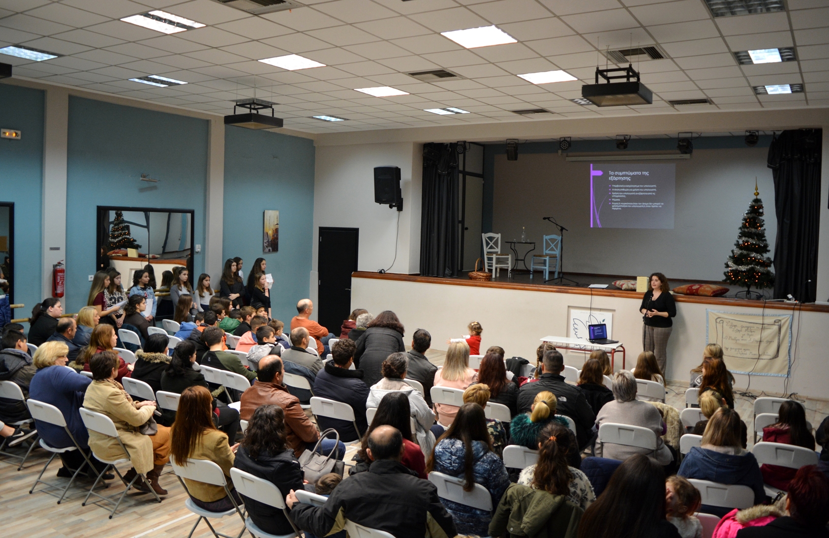 Γονείς, εκπαιδευτικοί και μαθητές αντάλλαξαν ευχές, τραγούδησαν, μάζεψαν φάρμακα και τρόφιμα για τους ανθρώπους που τα έχουν ανάγκη, συγκινήθηκαν με τον κοσμοκαλόγερο των Χριστουγέννων, τον Αλέξανδρο Παπαδιαμάντη και τον βαθύ και αυθεντικό λόγο του, γεύτηκαν τα κουλουράκια των ευχών φτιαγμένα από καρδιάς από τις μαθήτριες του Γυμνασίου μας, ευχήθηκαν σε όλες τις γλώσσες και ενημερώθηκαν για την επικινδυνότητα της εξάρτησης από τον υπολογιστή και το διαδίκτυο από την ψυχολόγο κ. Λουγκου Φανή.