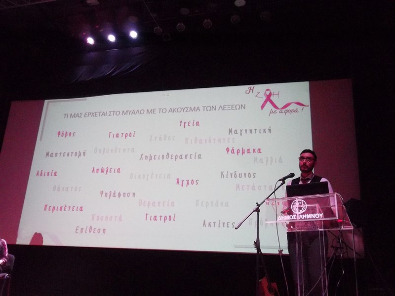 Η ζωντανή μαρτυρία της κας Σοφίας Χαψή για τη δική της «συνάντηση» με τη νόσο, καθώς και η γραπτή κατάθεση ψυχής του κου Άρη Τριάντου για τον ρόλο που θα πρέπει να έχει ο κάθε σύντροφος-συνοδοιπόρος στον αγώνα ζωής κάθε γυναίκας που νοσεί από καρκίνο του μαστού, έδωσαν πολλαπλά μηνύματα.