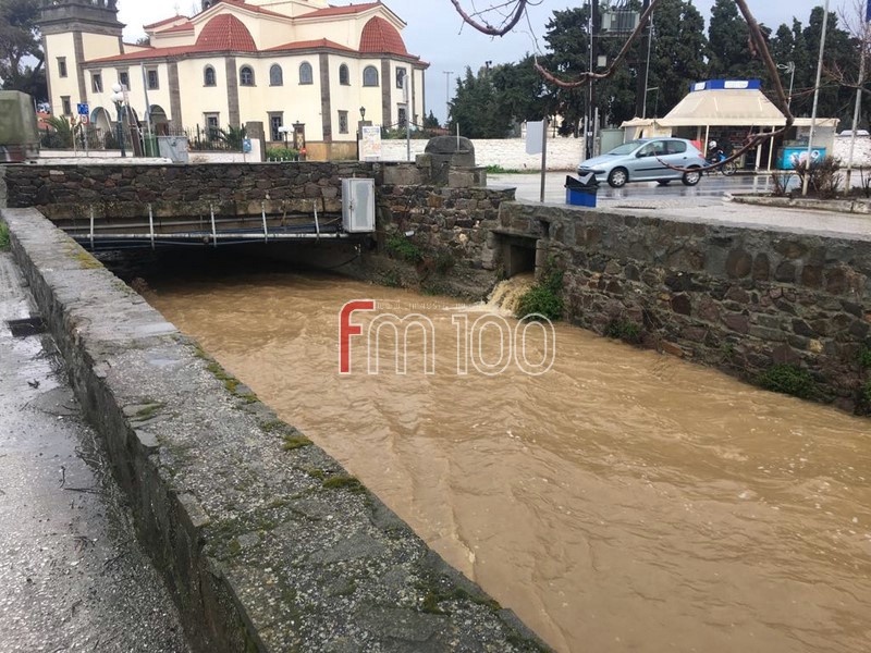 Τα έντονα καιρικά φαινόμενα είχαν ως αποτέλεσμα οι δρόμοι να μετατραπούν σε ποτάμια ενώ «φούσκωσε» το ποτάμι στην Αγία Τριάδα της Μύρινας.