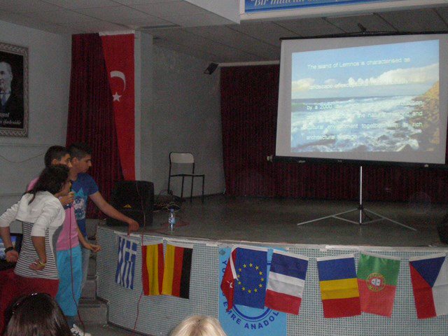 Σύμφωνα με το πρόγραμμα της συνάντησης, μετά από περιήγηση στις εγκαταστάσεις του σχολείου υποδοχής, Yunus Emre Anadolou Lisesi, οι μαθητές παρουσίασαν τη δουλειά που είχαν προετοιμάσει με θέματα: «Ο τόπος, η πόλη και το σχολείο μας», «To τοπίο και οι αλλαγές του» και «Προστατευόμενες περιοχές στον τόπο μας» σε όλους τους συμμετέχοντες, καθηγητές και μαθητές, και έπειτα συνεργάστηκαν ομαδικά για να δημιουργήσουν το σχέδιο για το μπλουζάκι του προγράμματος, να φυτέψουν δέντρα στον κήπο του σχολείου και να φτιάξουν ‘ένα έργο τέχνης με τα αποτυπώματα από τα χέρια τους.