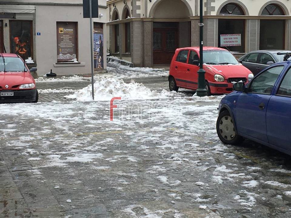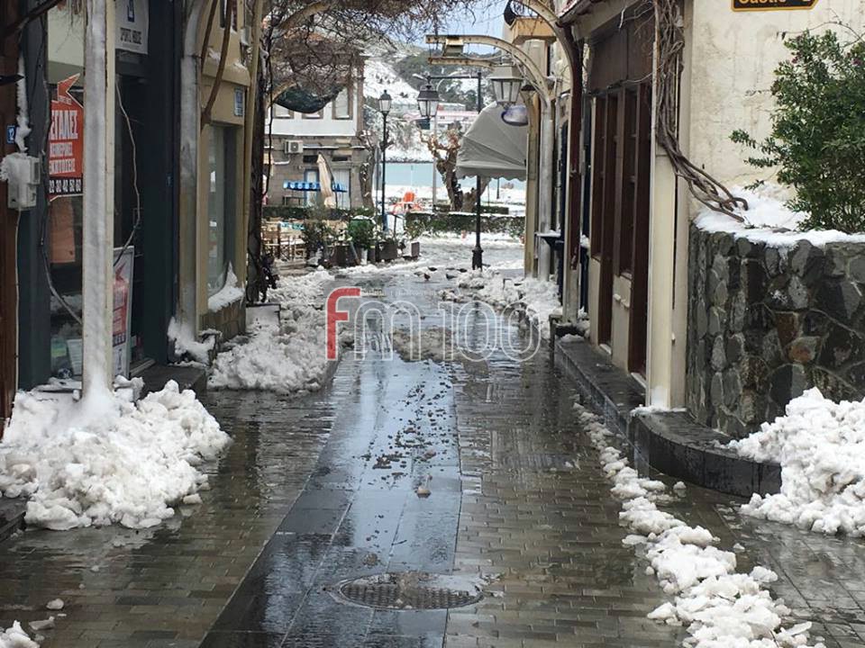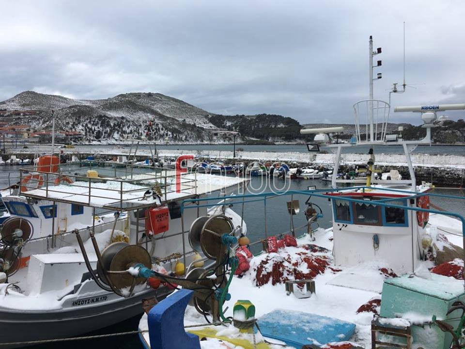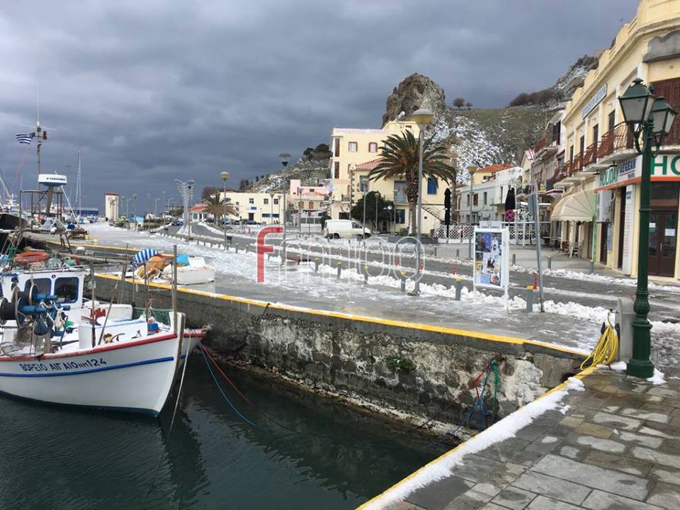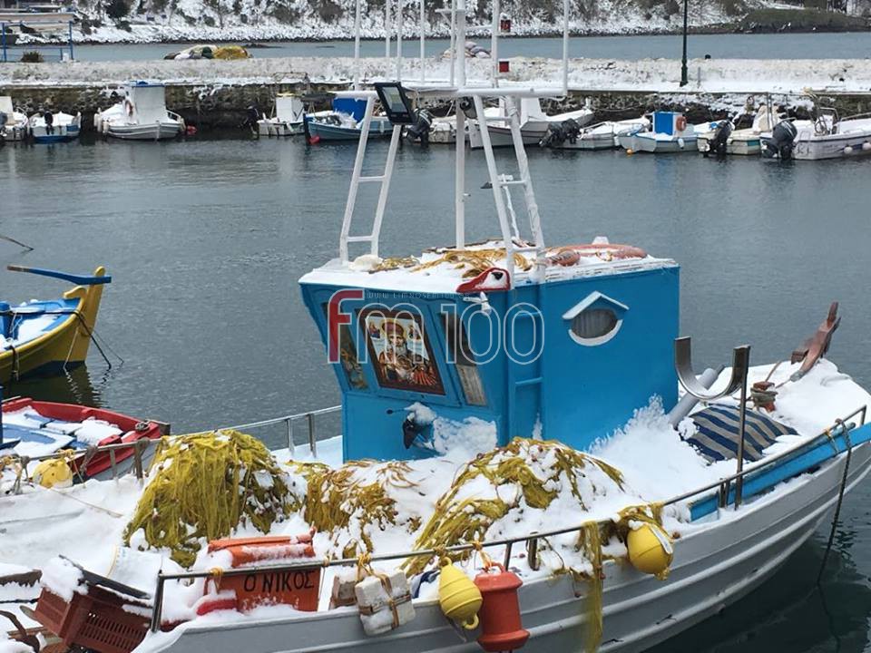 Το χιόνι έφτασε μέχρι τη θάλασσα, με τα ψαροκάικα στο λιμανάκι της Μύρινας να χαρίζουν υπέροχα ενσταντανέ.