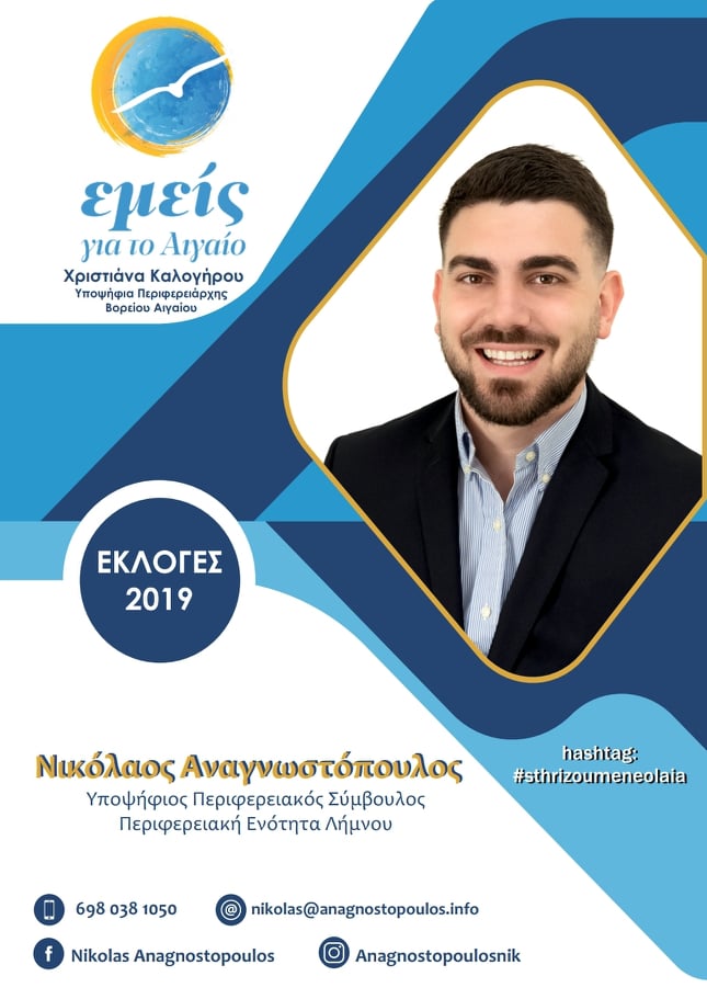 Οι ιδέες, οι προτάσεις και το όραμα μου για το νησί μας, πιστεύω θα βάλουν το δικό τους λιθαράκι για το καλό του τόπου μας και αυτό που θα επιδιώξω, ως ένας από τους νεότερους υποψήφιους περιφερειακούς συμβούλους πανελλαδικώς, θα είναι να εκφράζω στο Περιφερειακό Συμβούλιο την δική σου φωνή, την φωνή του τόπου ΜΑΣ.