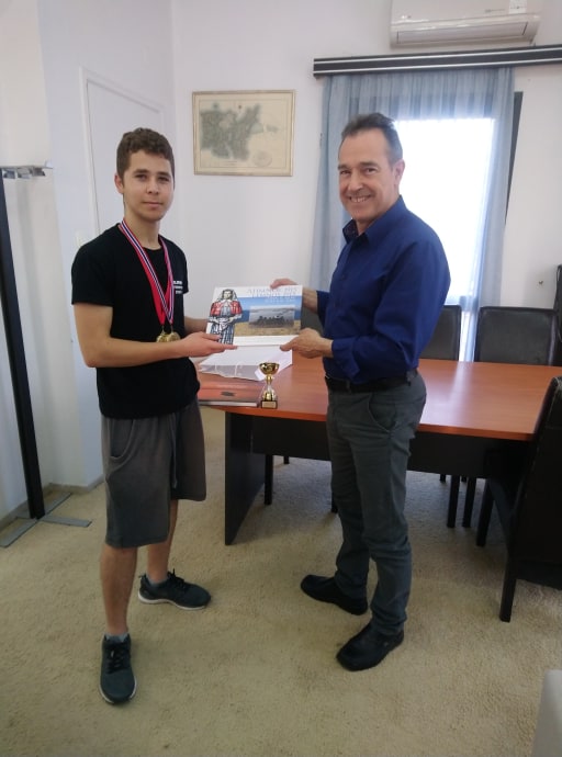 Προσέφερε στους αθλητές αναμνηστικά βιβλία με την ιστορία της Λήμνου στον Α΄ Παγκόσμιο Πόλεμο, αναφέροντας τους ότι όλα τα νέα παιδιά πρέπει να γνωρίζουν την ιστορία του τόπου τους και να την προασπίζουν.