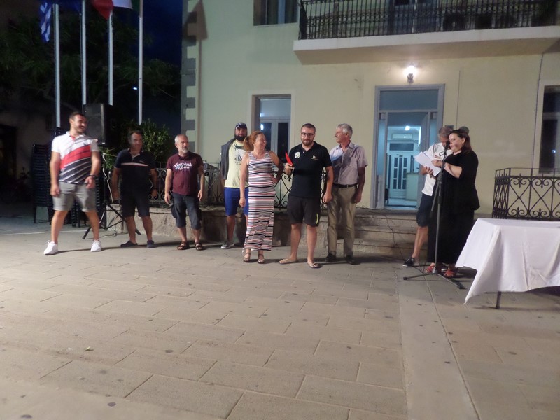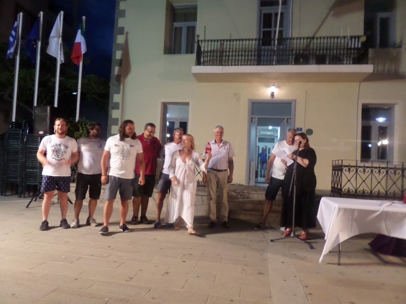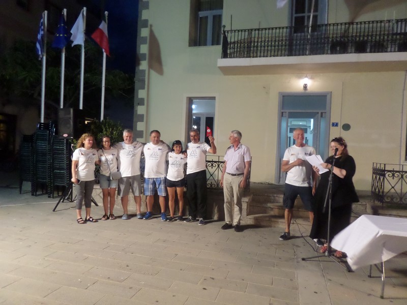 Το βράδυ του Σαββάτου 29 Ιουνίου πραγματοποιήθηκε εκδήλωση στο παλιό λιμάνι της Μύρινας, μπροστά στο Δημαρχείο, όπου ο Δήμαρχος Λήμνου κ. Δημήτρης Μαρινάκης καλωσόρισε τους διοργανωτές και τα πληρώματα και προσέφερε τιμητικές πλακέτες στον έφορο Ιστιοπλοΐας Ανοικτής Θαλάσσης του Ναυτικού Αθλητικού Ομίλου Καλαμαριάς Θεσσαλονίκης κ. Ιωάννη Συφαλέρα, τον κ. Στάθη Σοφίτση εκ μέρους του Ομίλου Θαλασσίων Αθλημάτων Καβάλας, καθώς και τον πρόεδρο του Ναυτικού Ομίλου Σμύρνης κ. Ακίφ Σεζέρ.