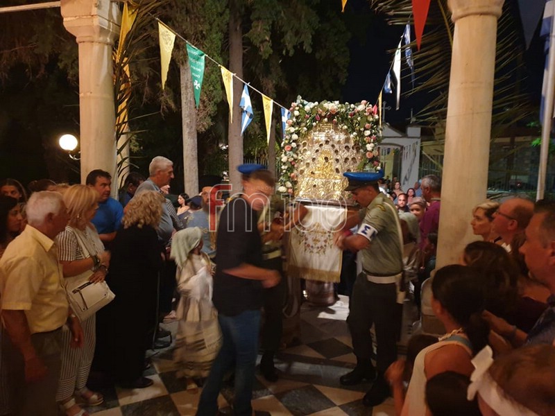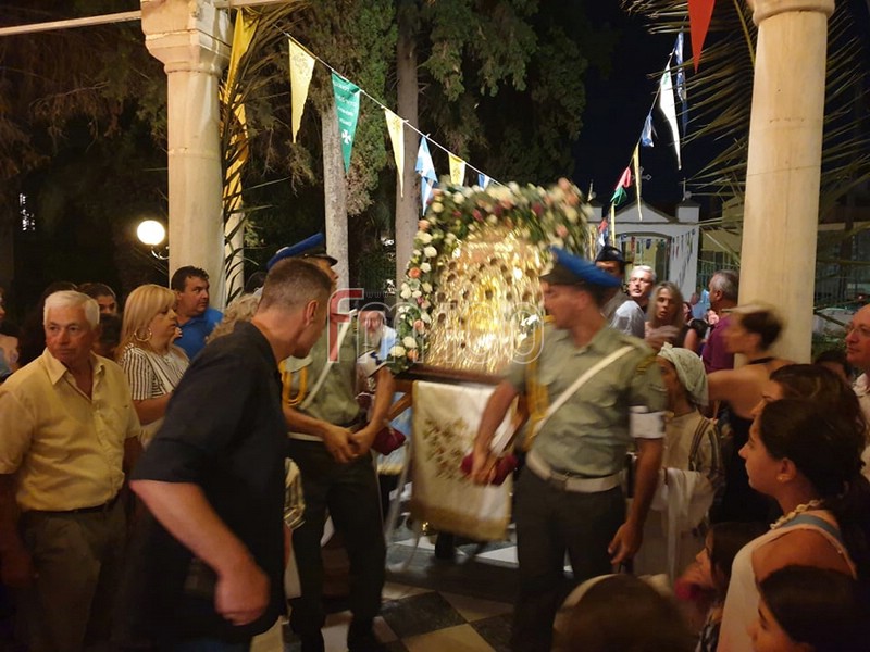 Πλήθος κατοίκων αλλά και επισκεπτών που βρίσκονται αυτές της ημέρες στο νησί, συνόδευσαν την περιφορά της εικόνας τιμώντας τη Μεγαλόχαρη.