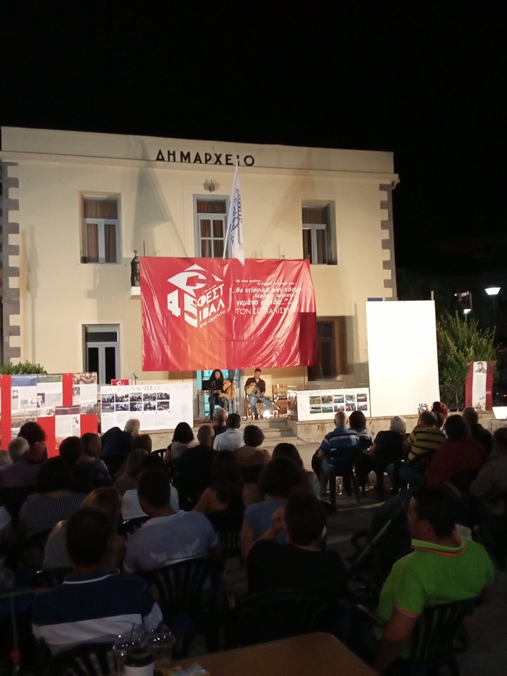 Πλήθος κόσμου παρακολούθησε με συγκίνηση το αφιέρωμα στον κομμουνιστή ποδοσφαιριστή Νίκο Γόδα και σιγοτραγούδησε άσματα που είναι συνυφασμένα με την ιστορία του λαϊκού κινήματος παρέα με τους μουσικούς Μαρία Κετικίδου και Σπύρο Πλάντζο.